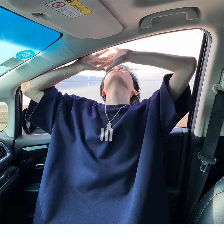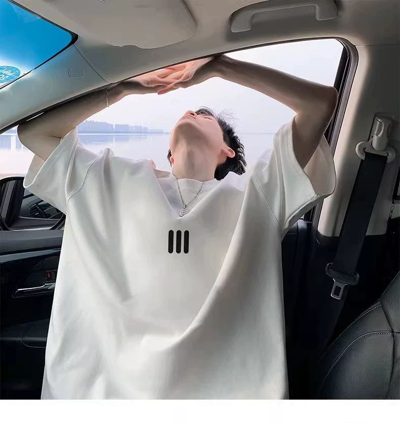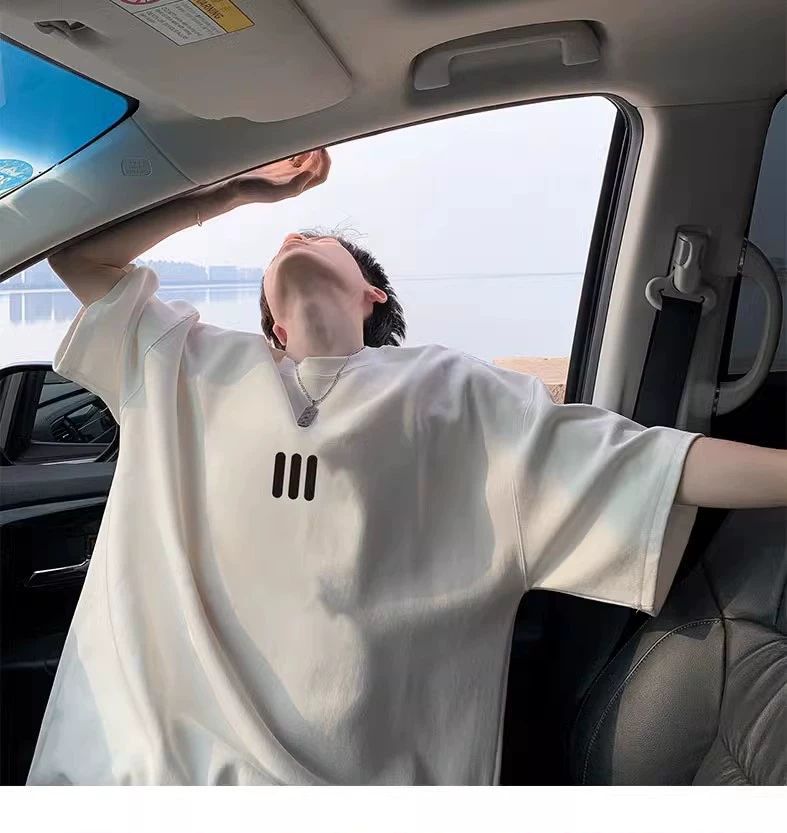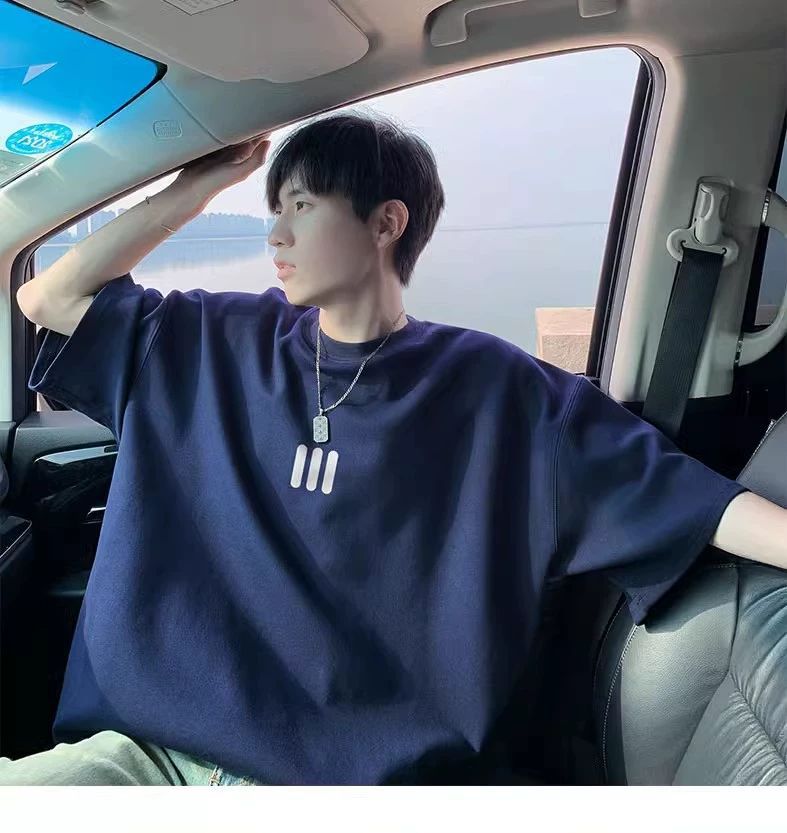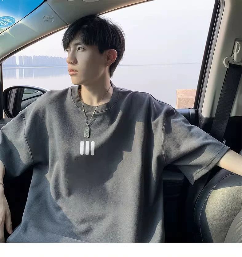 220g 무거운 미국면 반팔 티셔츠 남성 여름 패션 브랜드 느슨한 작은 목선 7 소매 연인 반소매