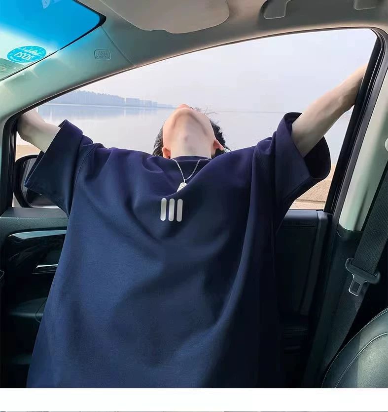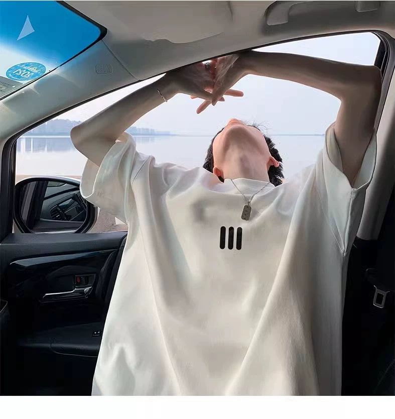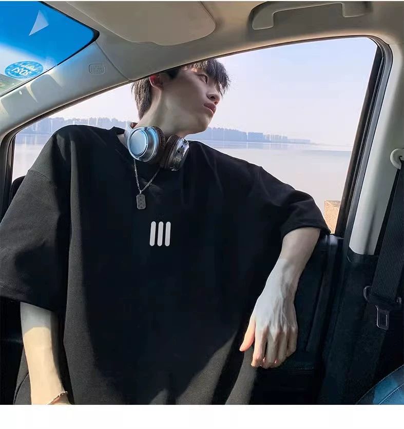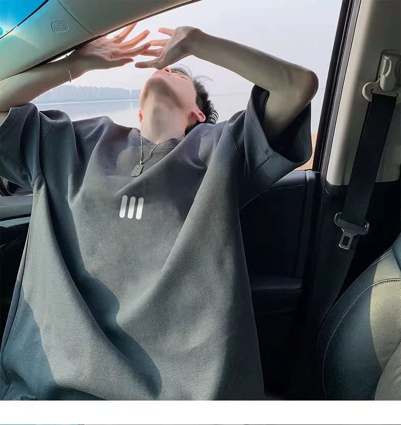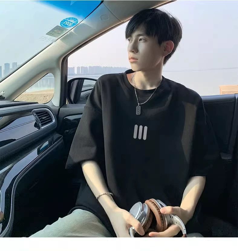 220g 무거운 미국면 반팔 티셔츠 남성 여름 패션 브랜드 느슨한 작은 목선 7 소매 연인 반소매