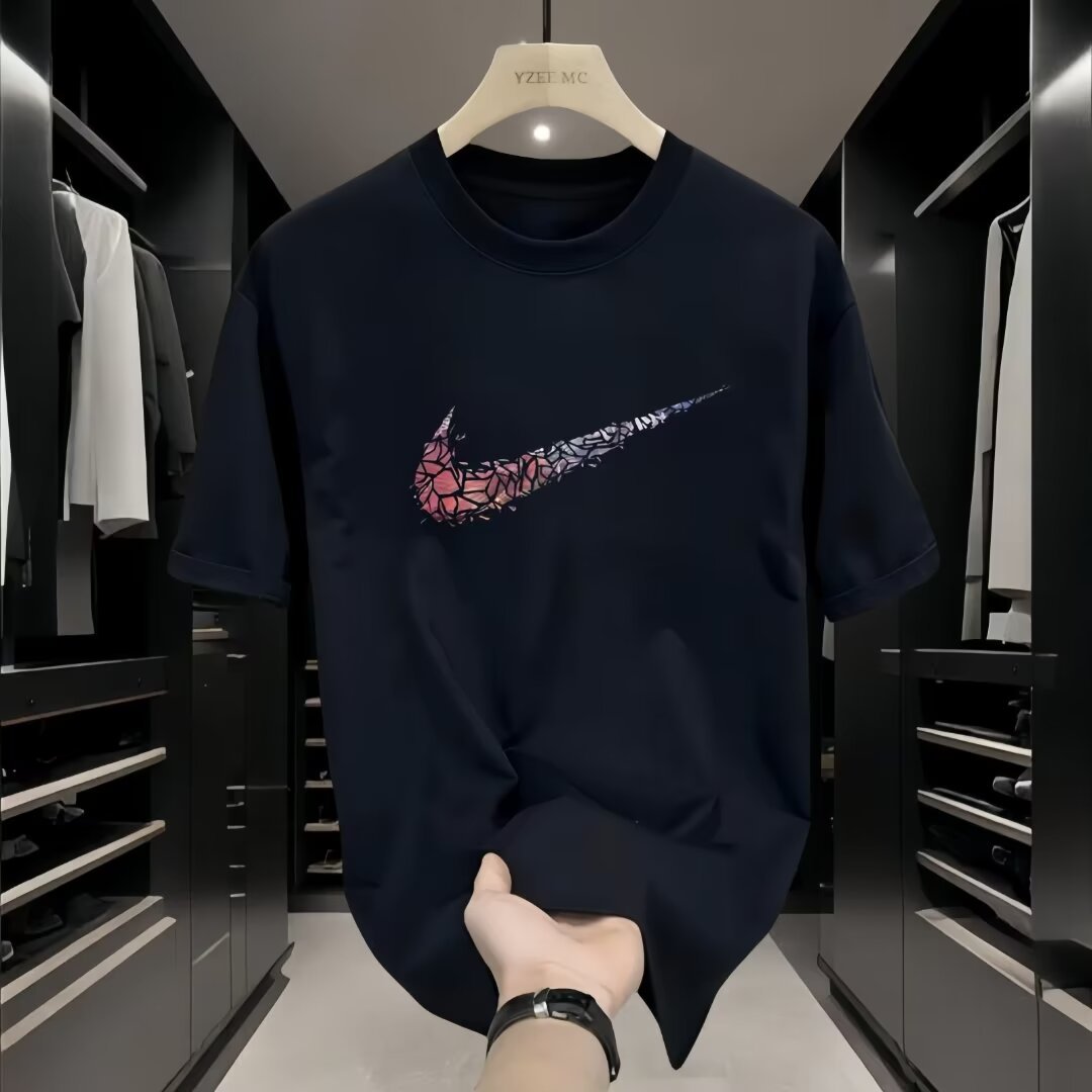 2025 년 여름 새 편지 인쇄 반팔 티셔츠 폴리에스터 라운드 넥 슬림 핏 반팔 올 매치 트렌디 반팔 남성