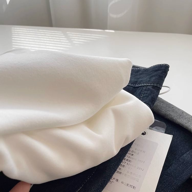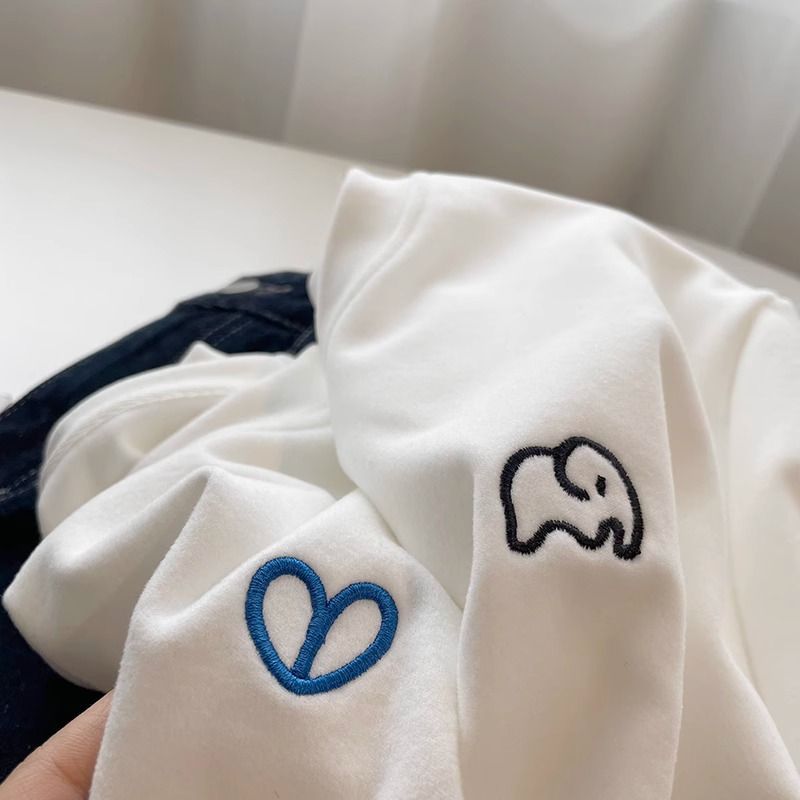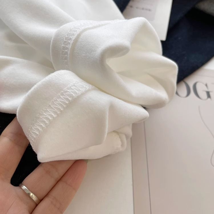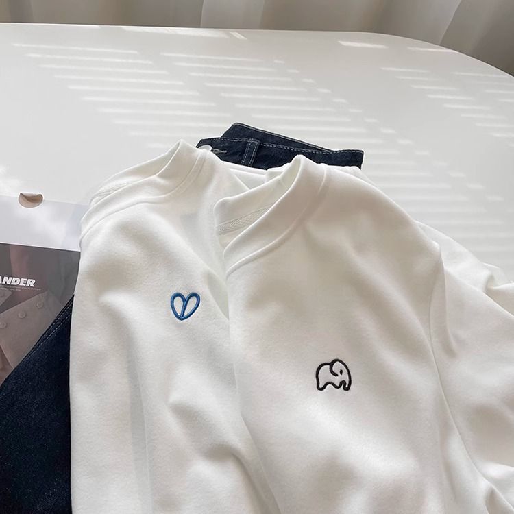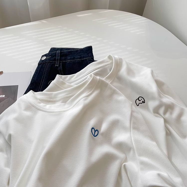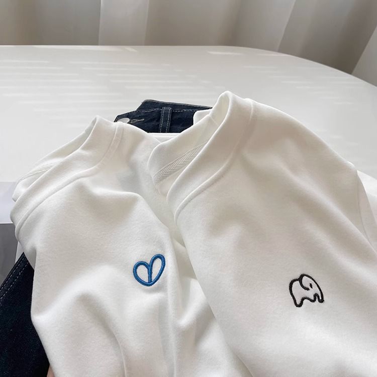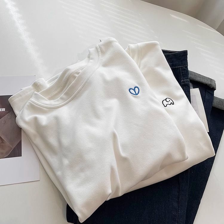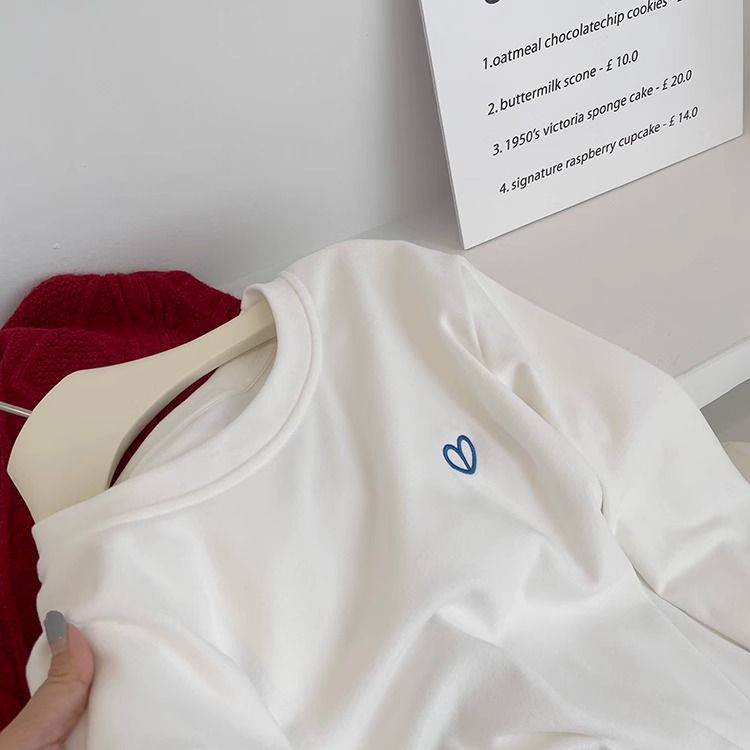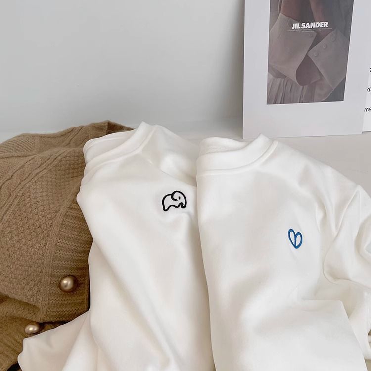 따뜻한 드 벨벳 작은 자수 둥근 목 흰색 긴 소매 티셔츠 여성! 가을과 겨울 두꺼운 느슨한 내부 착용 외신베이스 셔츠