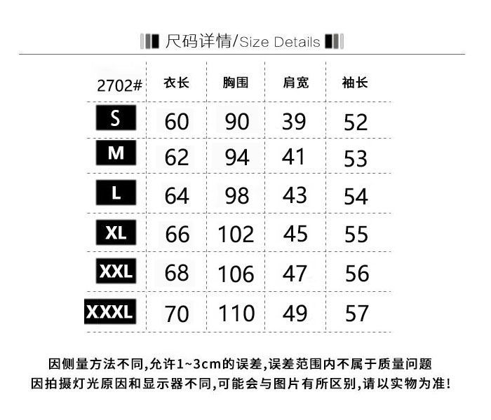 | 尺码 | S(60-80斤), M(80-100斤), L(100-115斤), XL(115-130斤), 2XL(130-150斤), 3XL(150-170斤) | 风格类型 | 日韩休闲 |