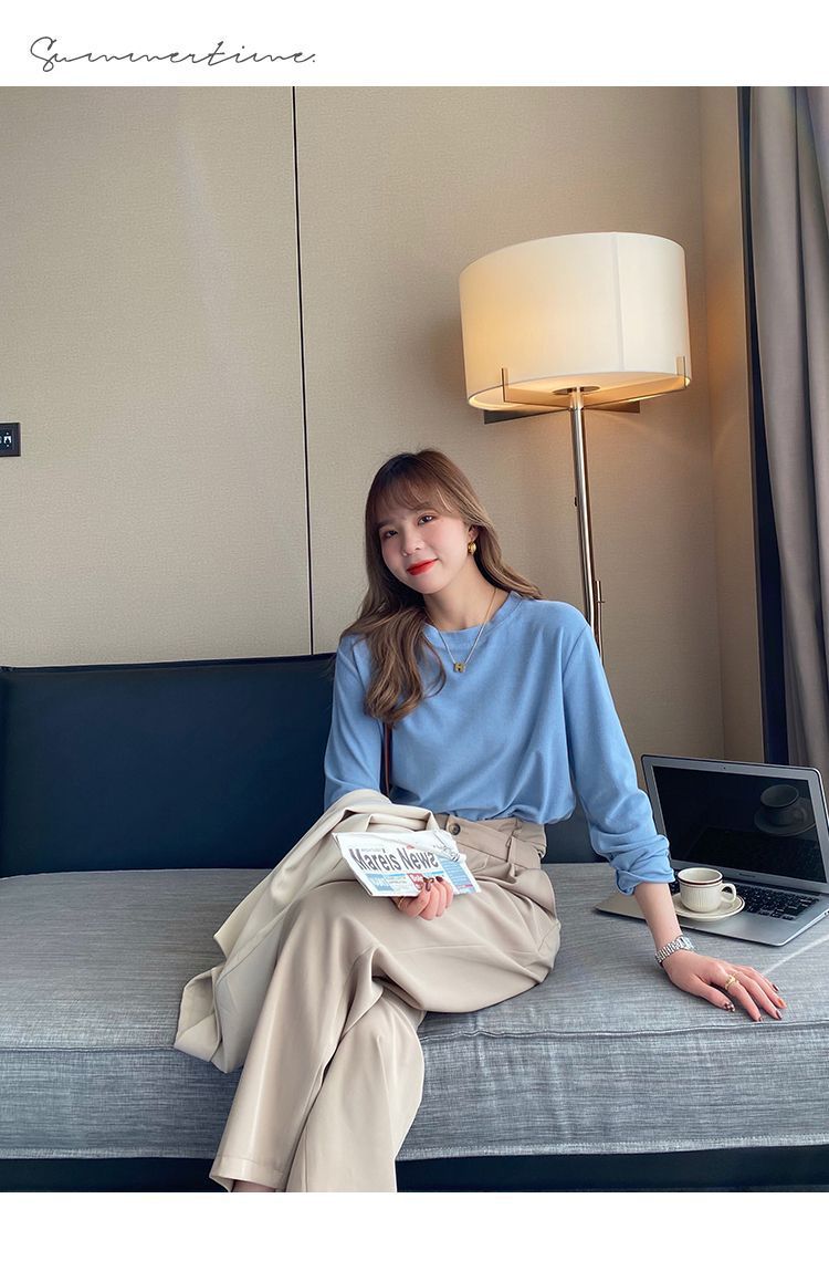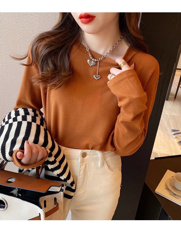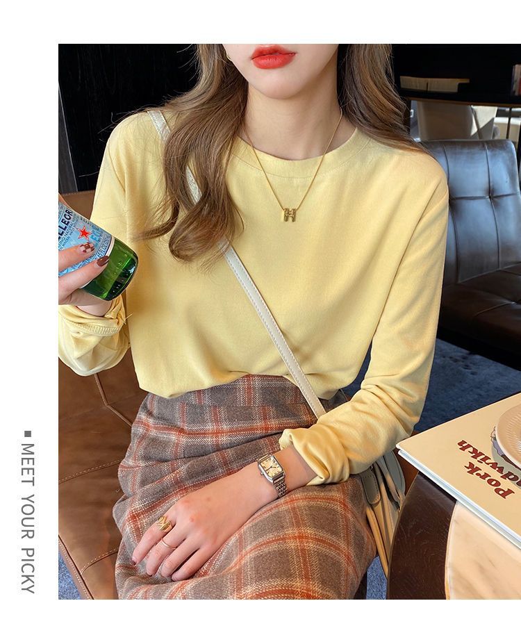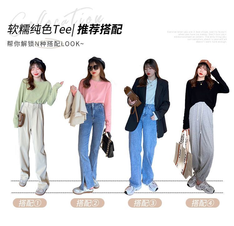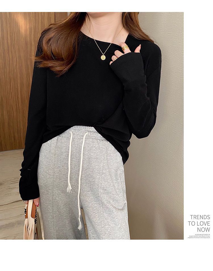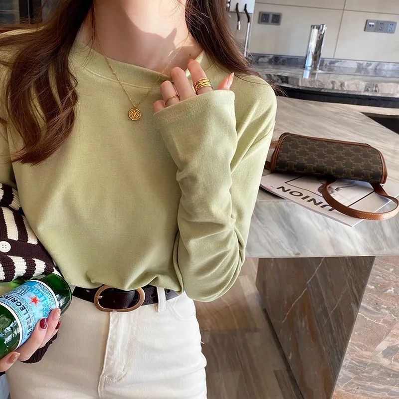 양면 벨벳 가을과 겨울 새로운 긴팔 티셔츠 여성용 느슨한 내베이스 셔츠 라운드 넥 샌딩 화이트 솔리드 컬러 탑