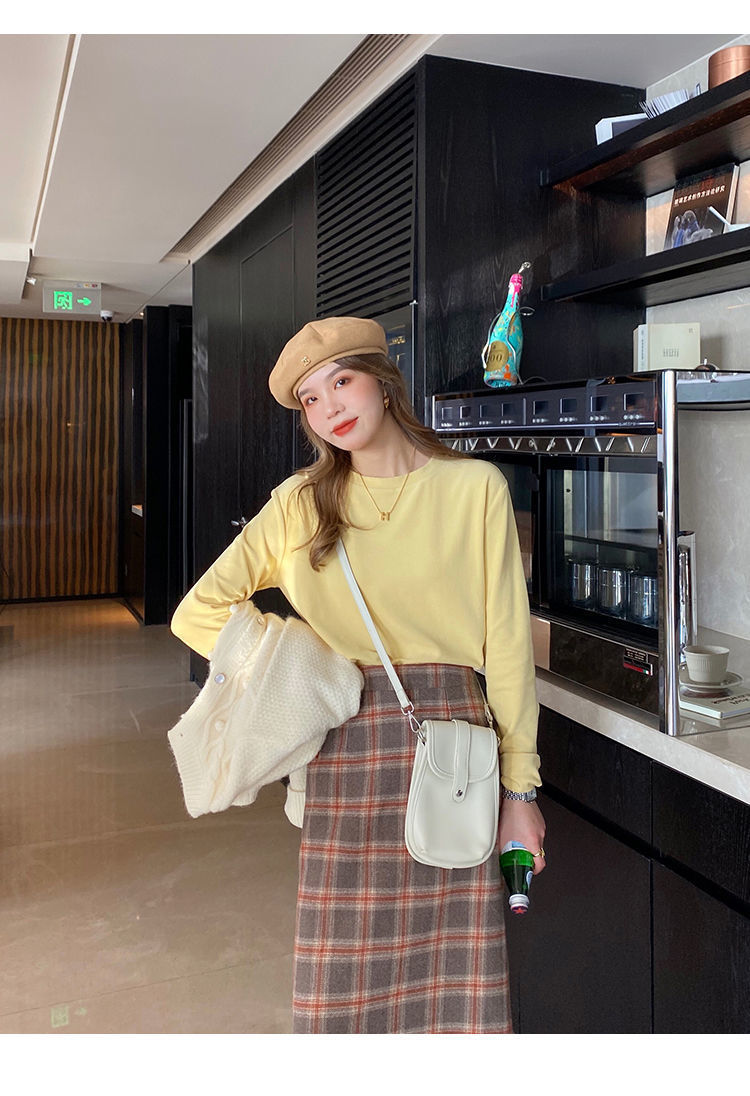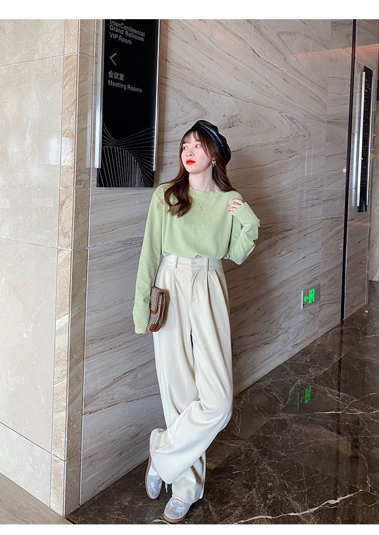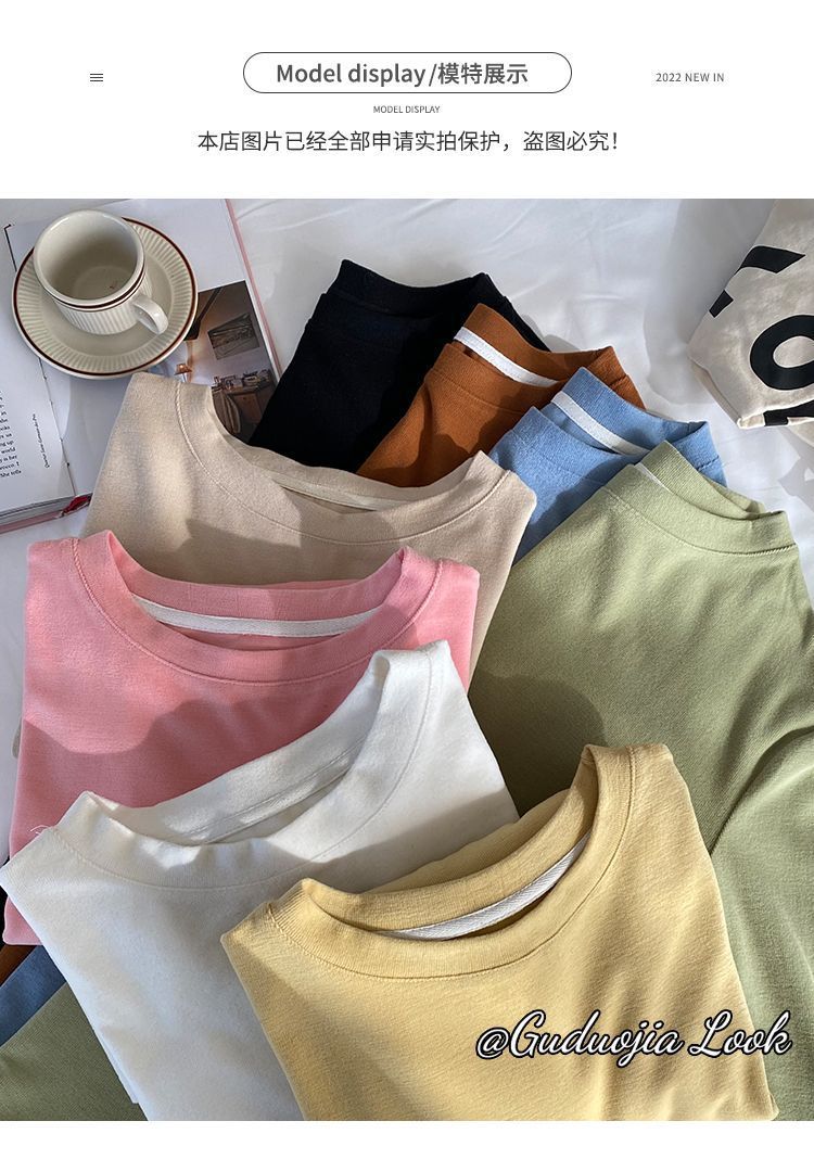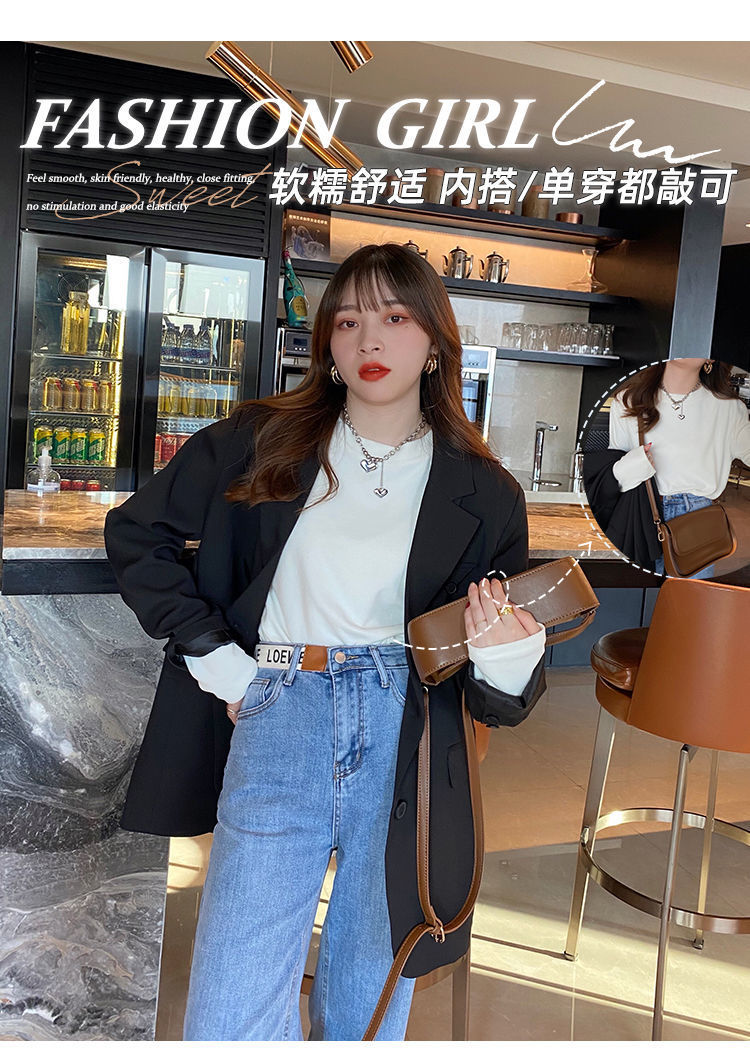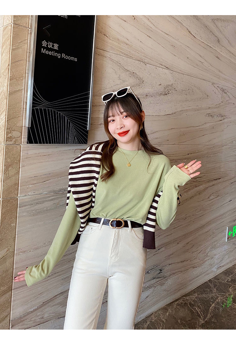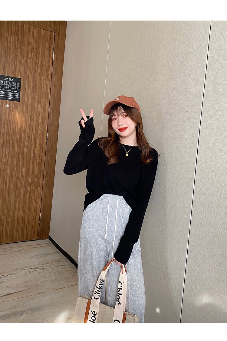 양면 벨벳 가을과 겨울 새로운 긴팔 티셔츠 여성용 느슨한 내베이스 셔츠 라운드 넥 샌딩 화이트 솔리드 컬러 탑