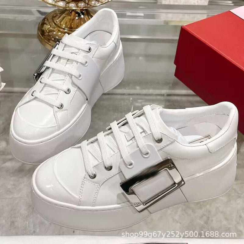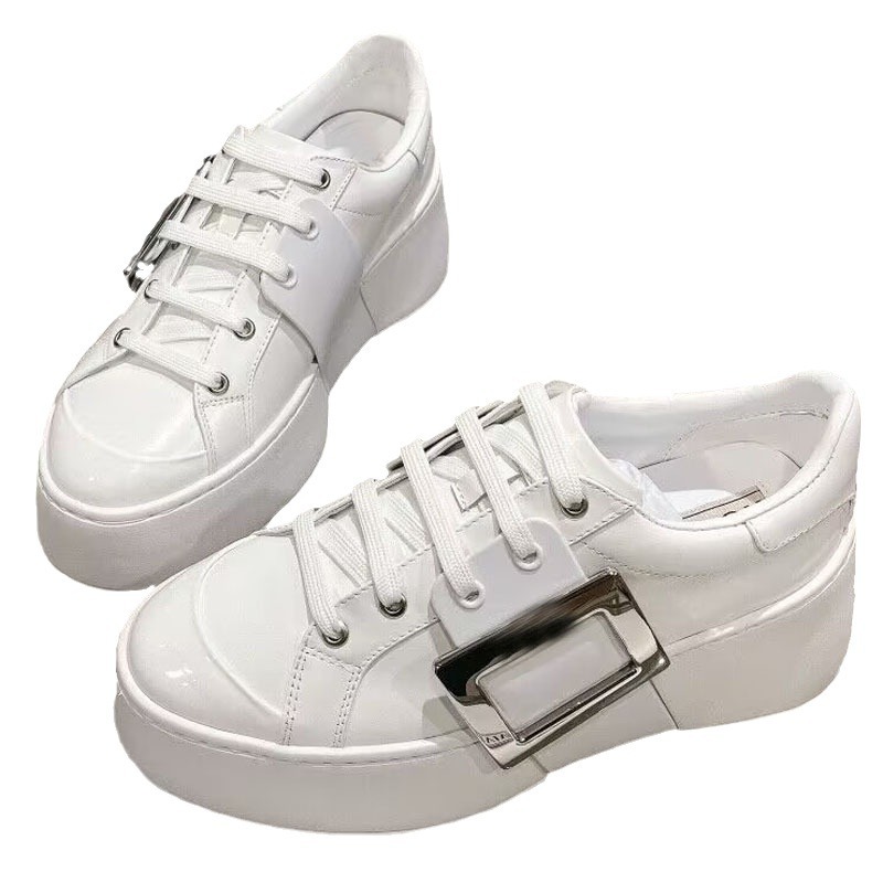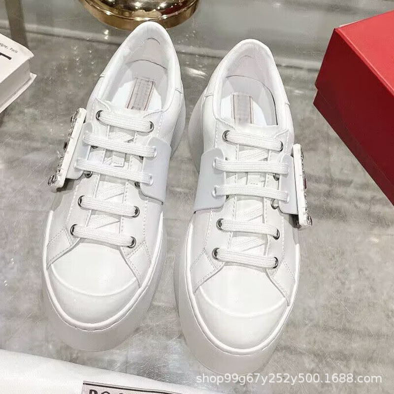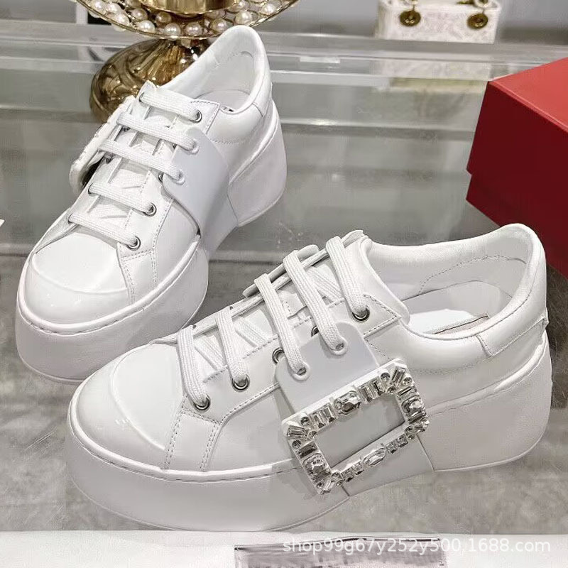 R 하이 버전 24 뉴 라인스톤 화이트 슈즈 스노우플레이크 스퀘어 버튼 로퍼 다용도 캐주얼 키높이 스니커즈 두꺼운 밑창 스포츠