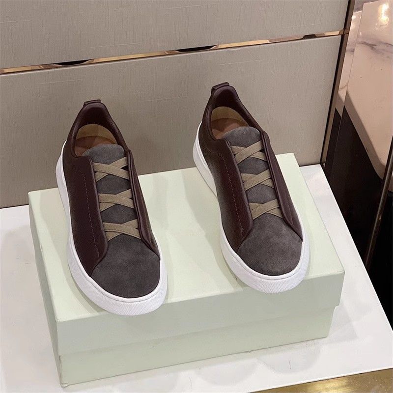 신축성있는 밴드 남성 운동화 가죽 레이스 업 캐주얼 신발 남성용 슬립 온 비 슬립 캐주얼 신발