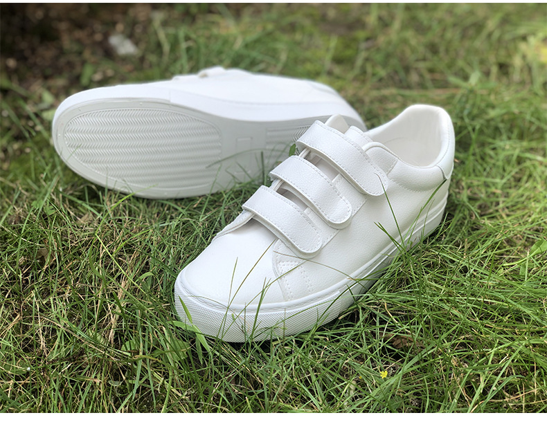남성과 여성을위한 소프트 단독 흰색 신발 가죽 얼굴 모든 경기 성능 버클 보드 신발 그룹 구매 큰 어린이 중 어린이 벨크로 화이트 신발