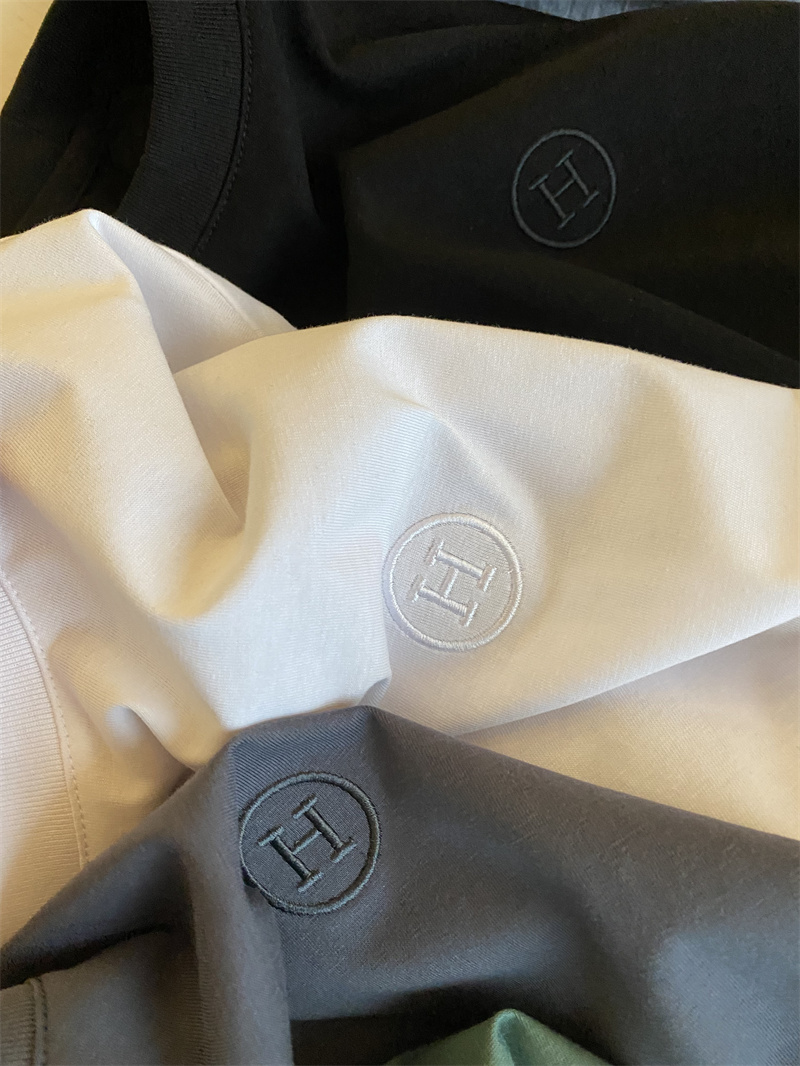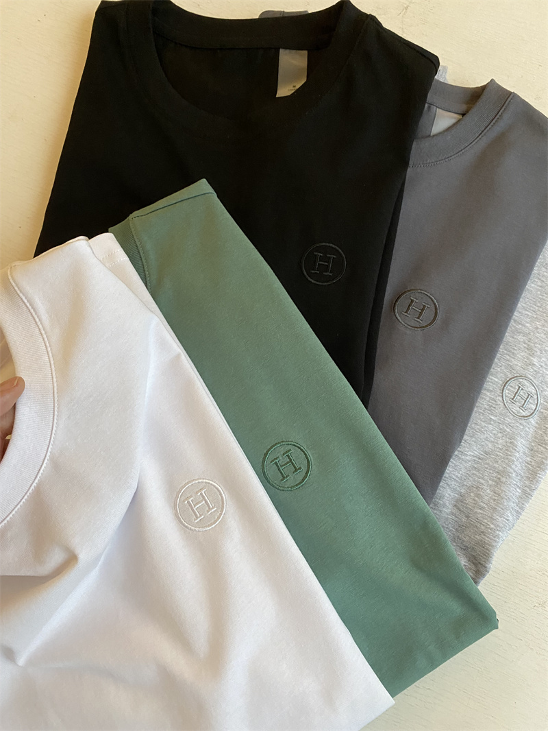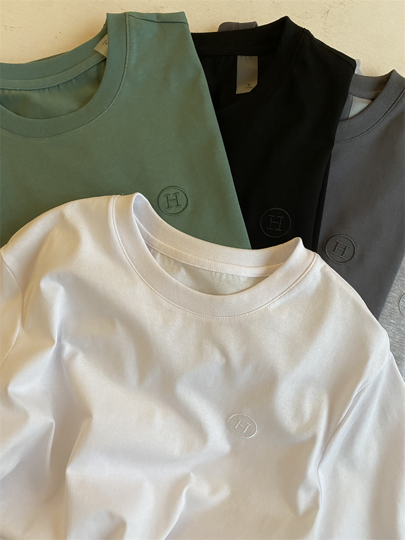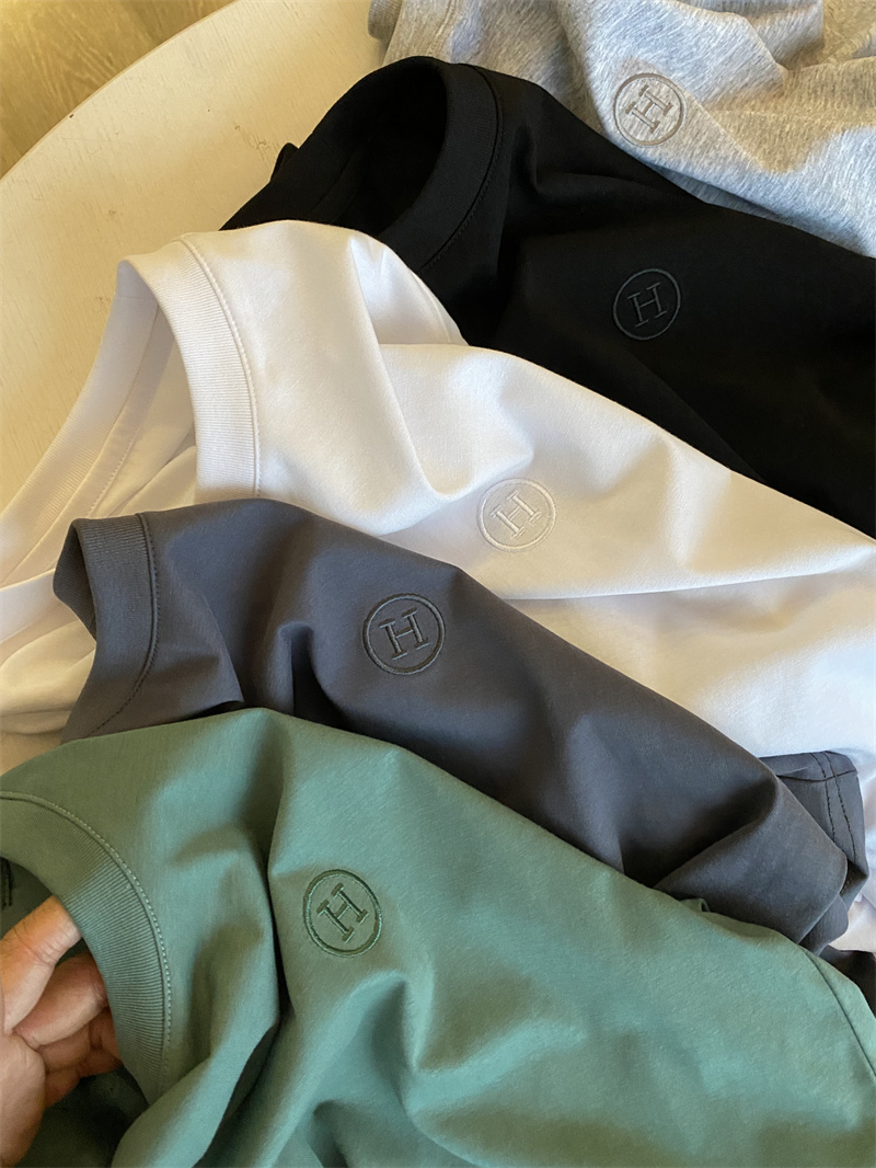입 라인의 단어! 피부 친화적 인 물 부드러운면! 세이코 레터 스피닝 캐주얼 패션 수 놓은 봄과 여름 남성 단색 반팔 티셔츠