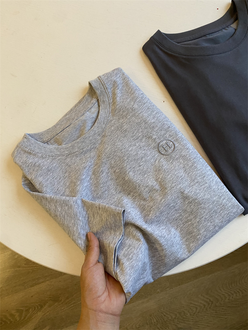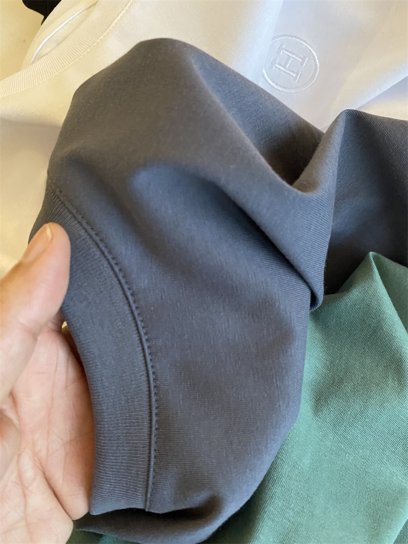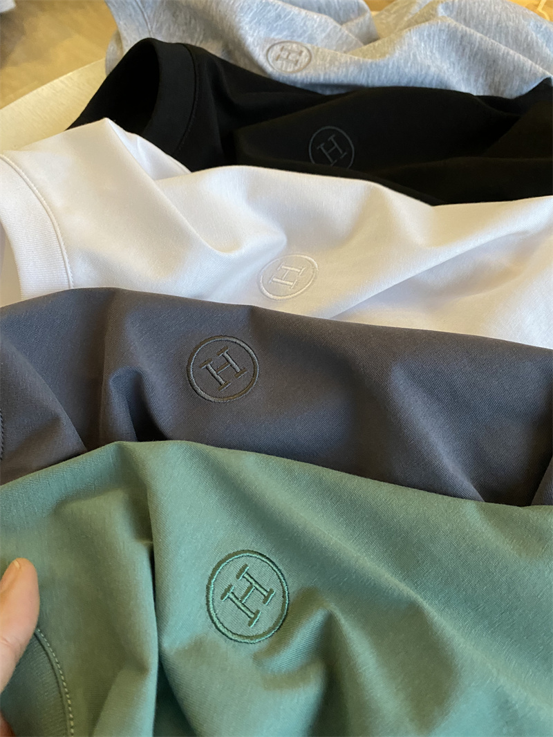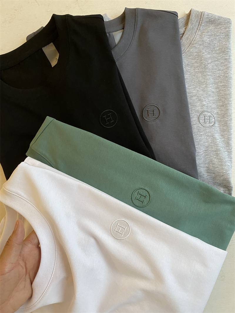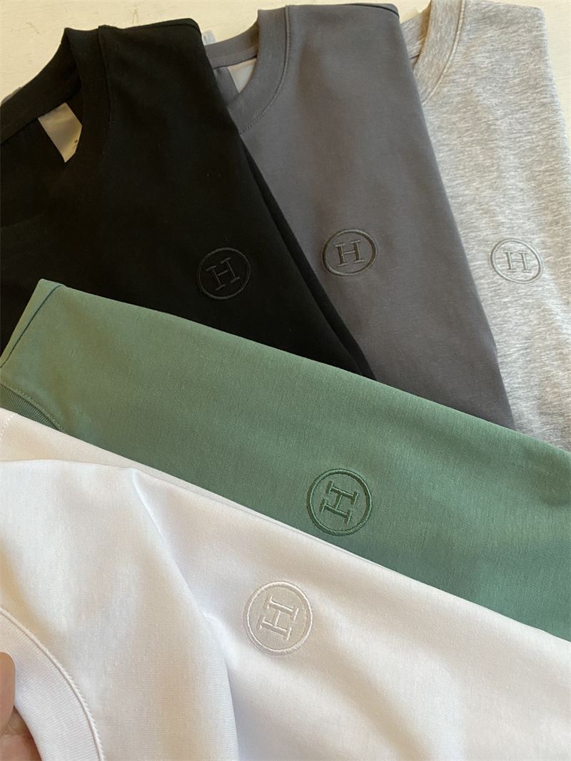 입 라인의 단어! 피부 친화적 인 물 부드러운면! 세이코 레터 스피닝 캐주얼 패션 수 놓은 봄과 여름 남성 단색 반팔 티셔츠