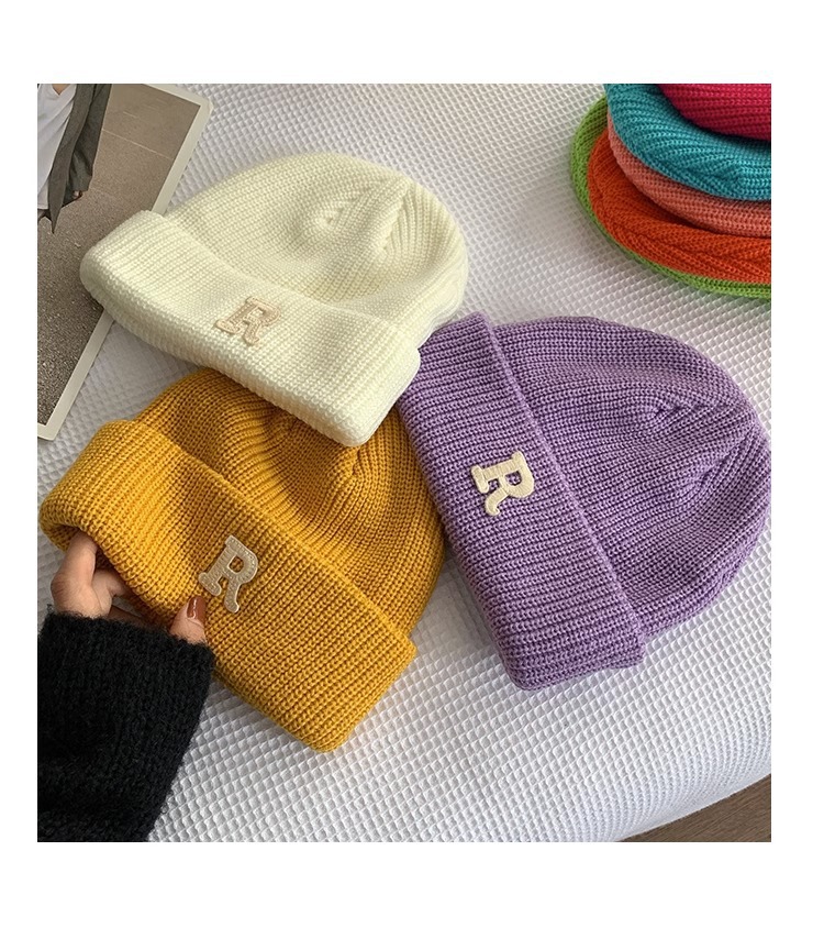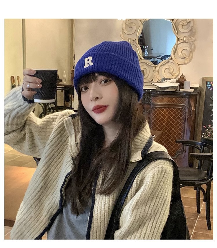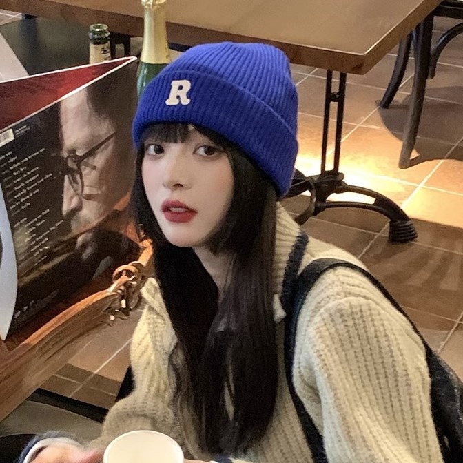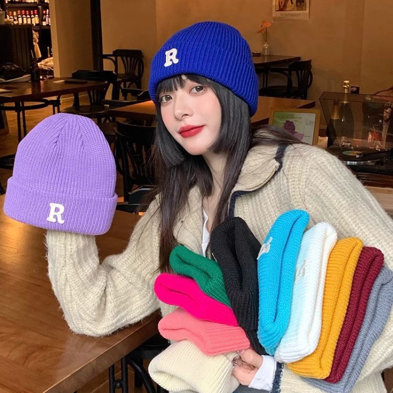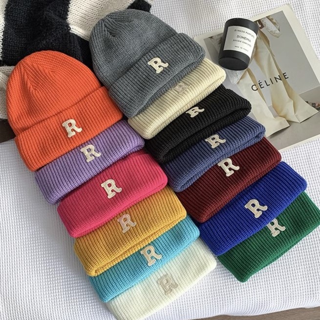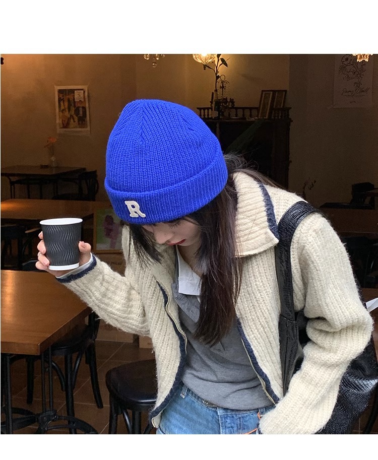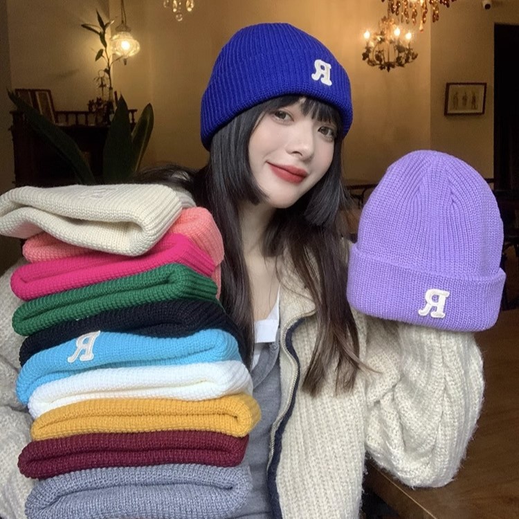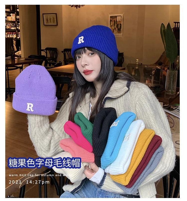 한국식 가을과 겨울 문자 R 간단한 올 매치 니트 캡 냉장 따뜻한 캡으로 남녀 표준 울 캡