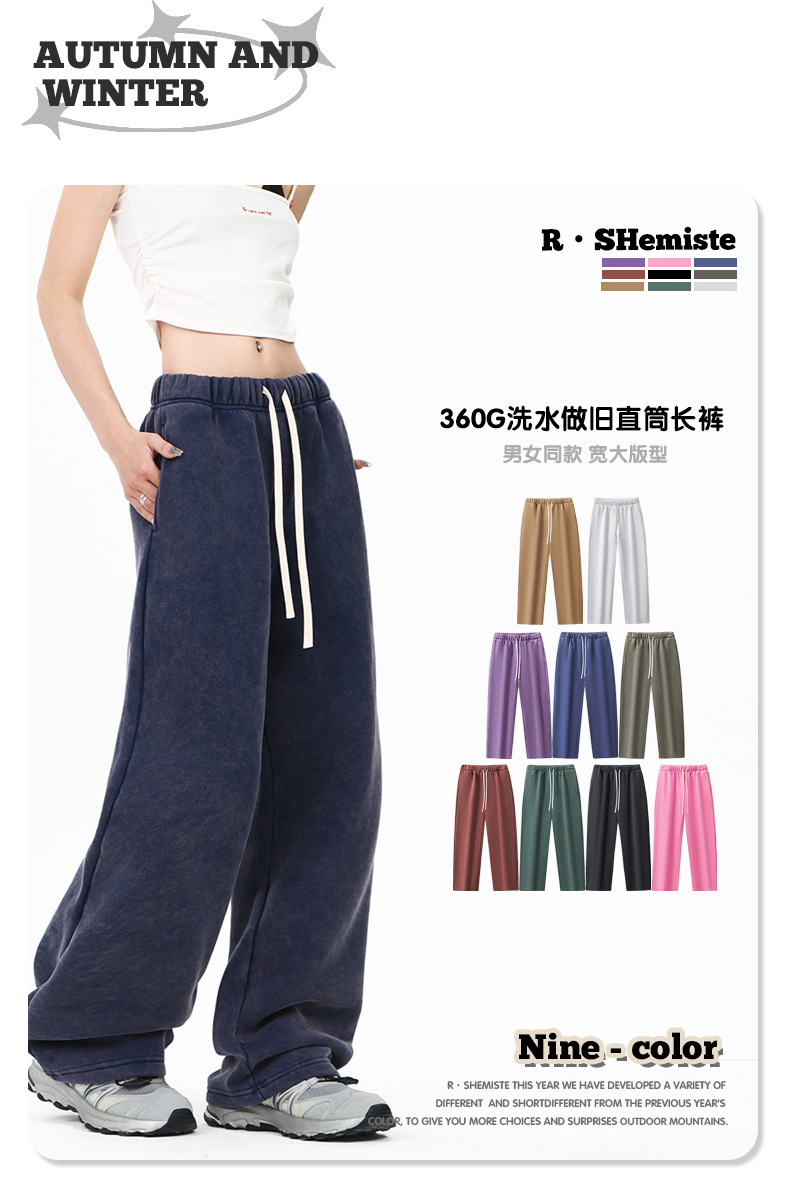 360G 컬러워싱 빈티지 캐주얼 팬츠 남성용 크로스보더 유럽 및 미국 스타일 헤비웨이트 와이드 팬츠 남성용
