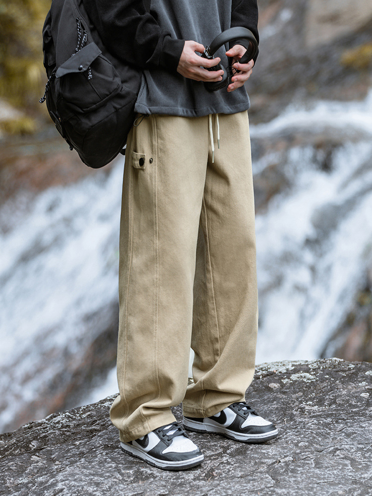 순면 트윌 질감 캐주얼 팬츠 봄 신상품 조절 가능한 디자인 스플라이싱 레트로 트렌디 브랜드 루즈핏 롱 팬츠