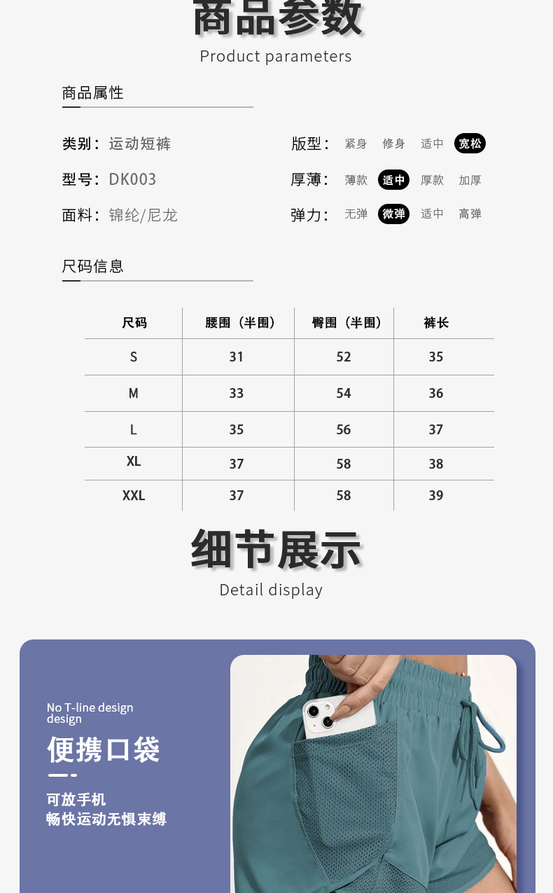 | 裤长 | 3分短裤 | 下装款式 | 假两件运动短裤 |