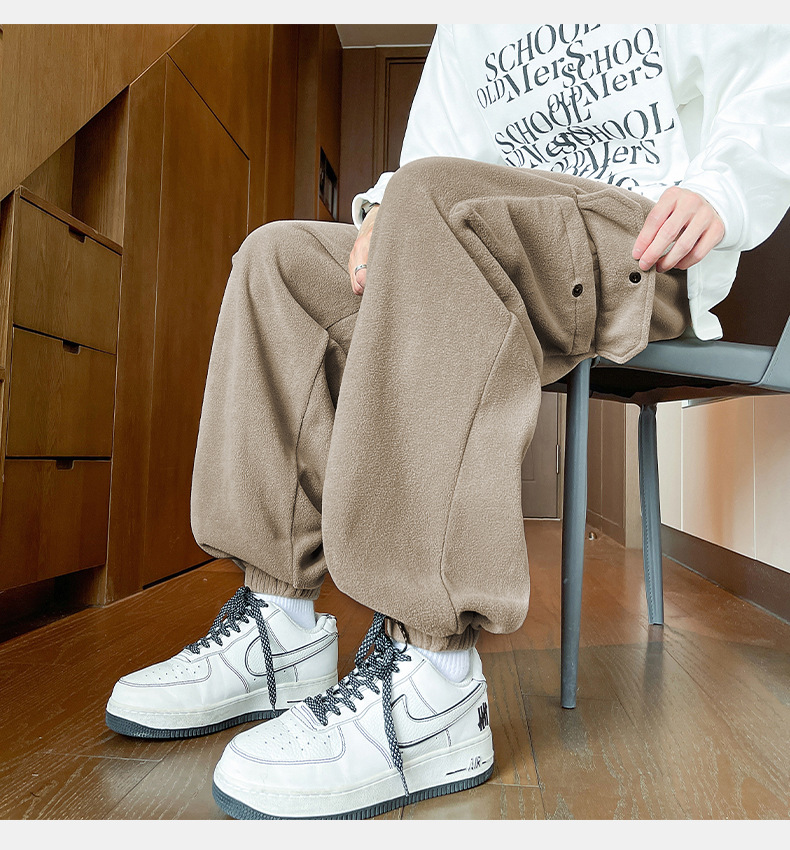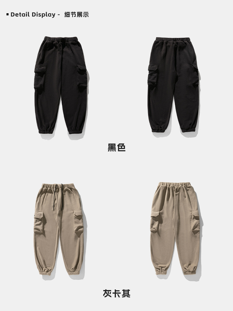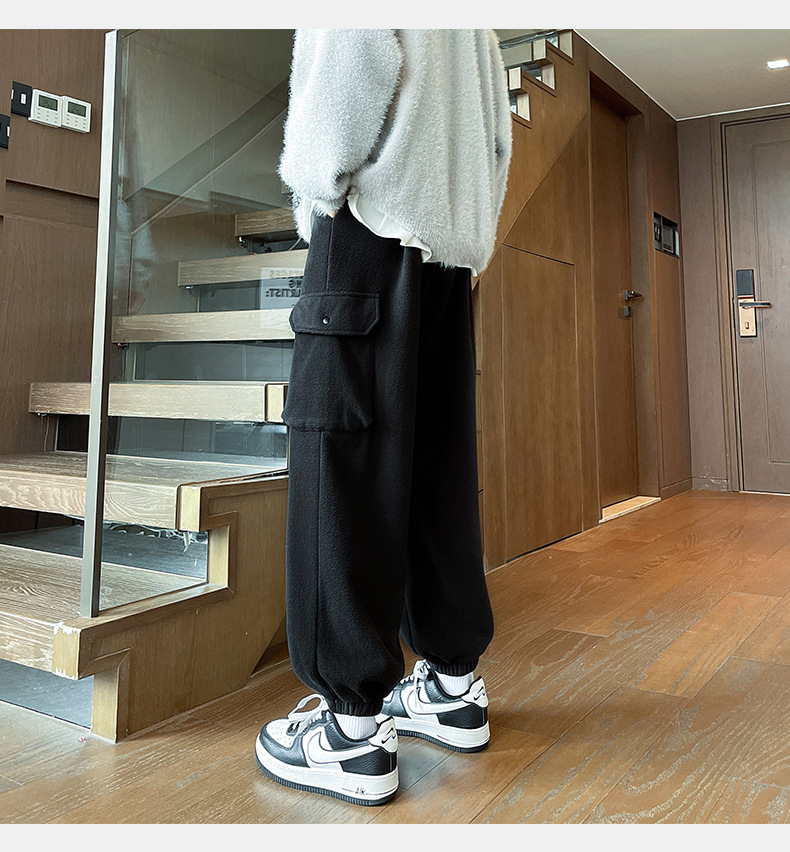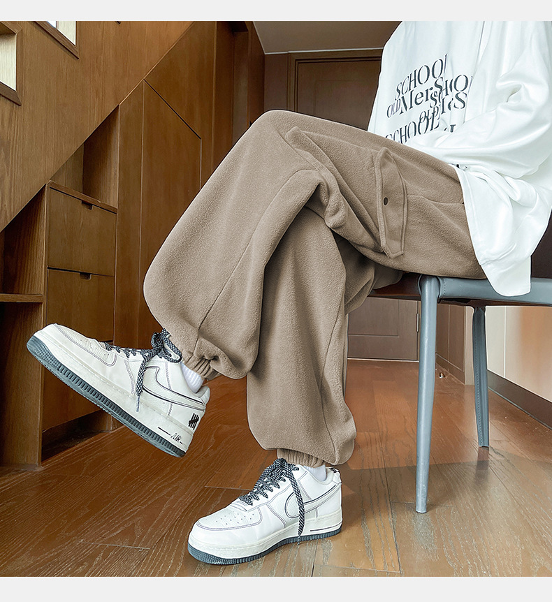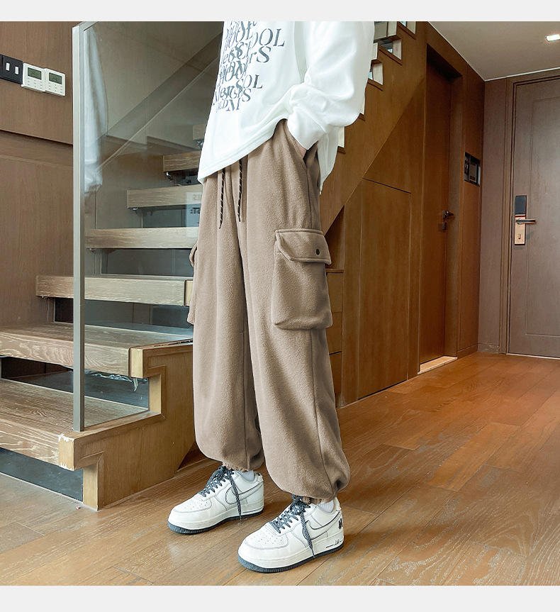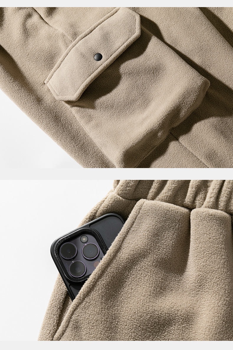 미국 레트로 스타일 폴라 플리스 대형 포켓 디자인 캐주얼 팬츠 가을 겨울 신상 롱 팬츠 트렌디 브랜드 루즈핏 조거 팬츠