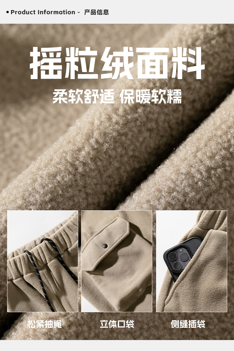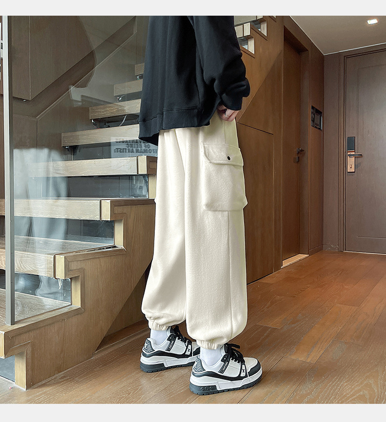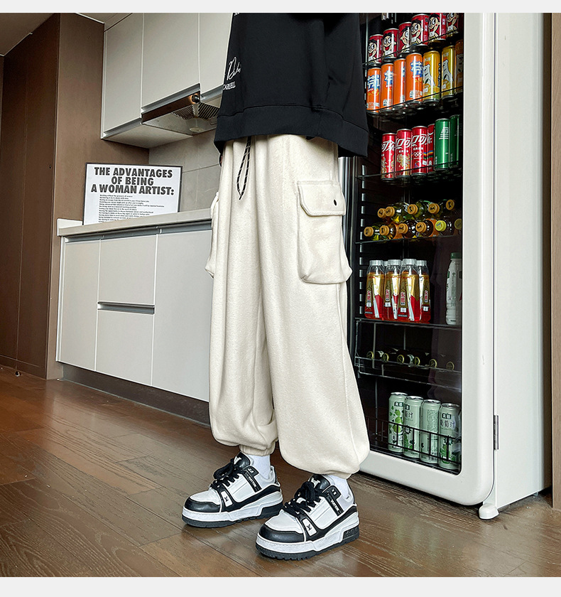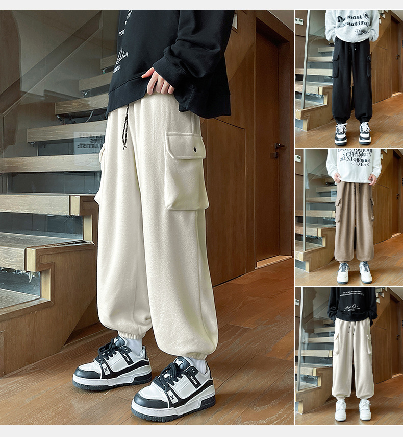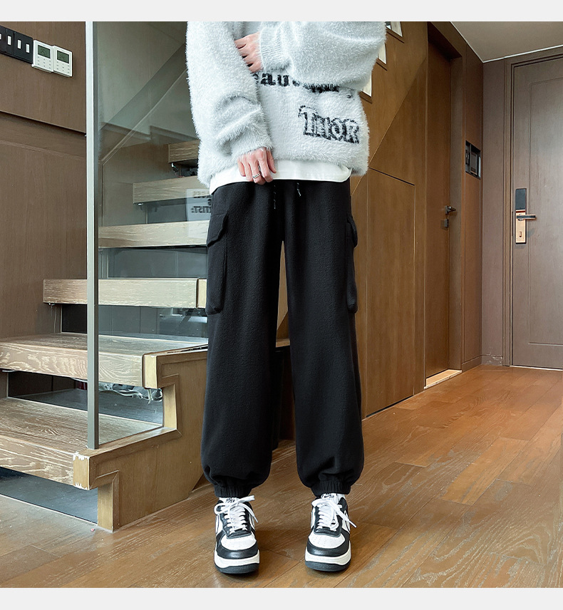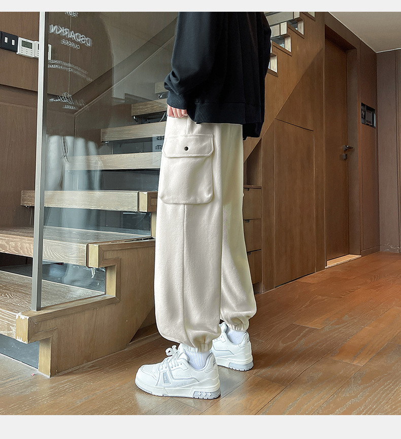 미국 레트로 스타일 폴라 플리스 대형 포켓 디자인 캐주얼 팬츠 가을 겨울 신상 롱 팬츠 트렌디 브랜드 루즈핏 조거 팬츠
