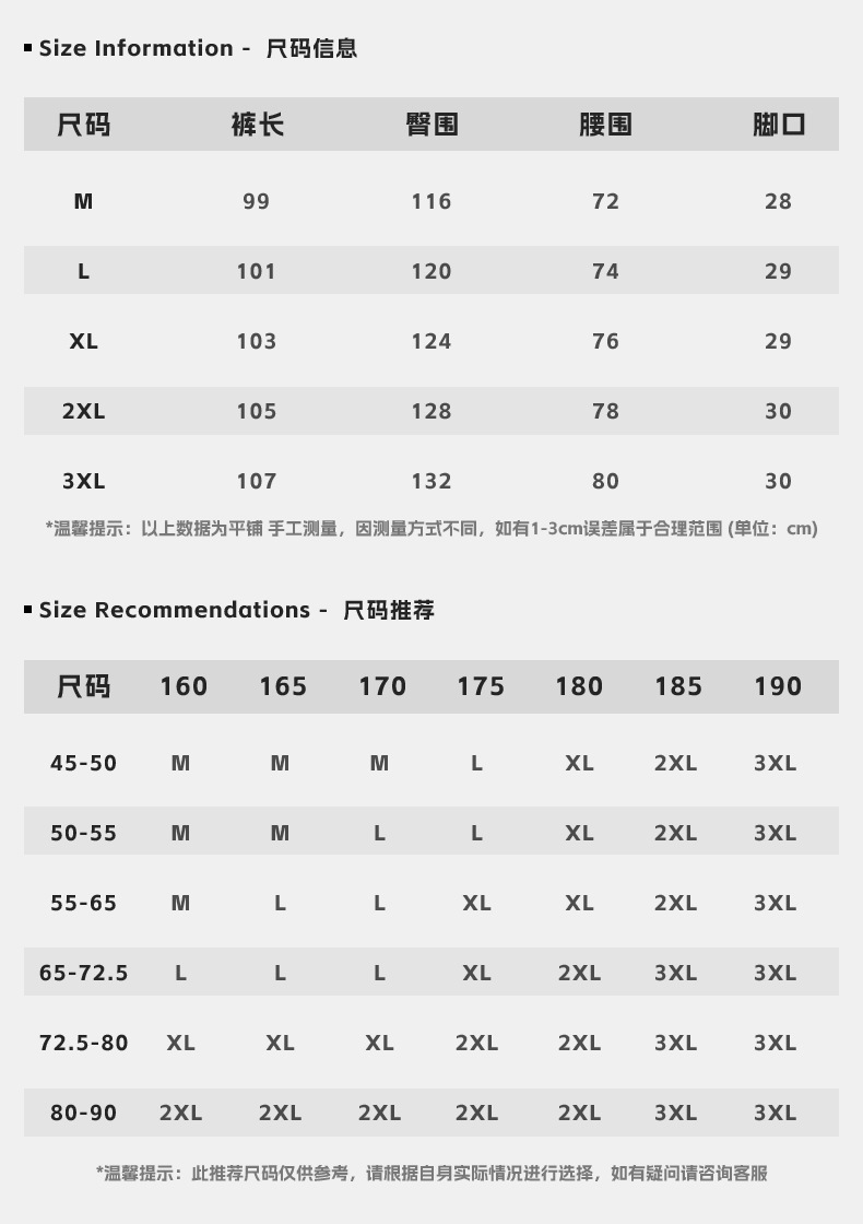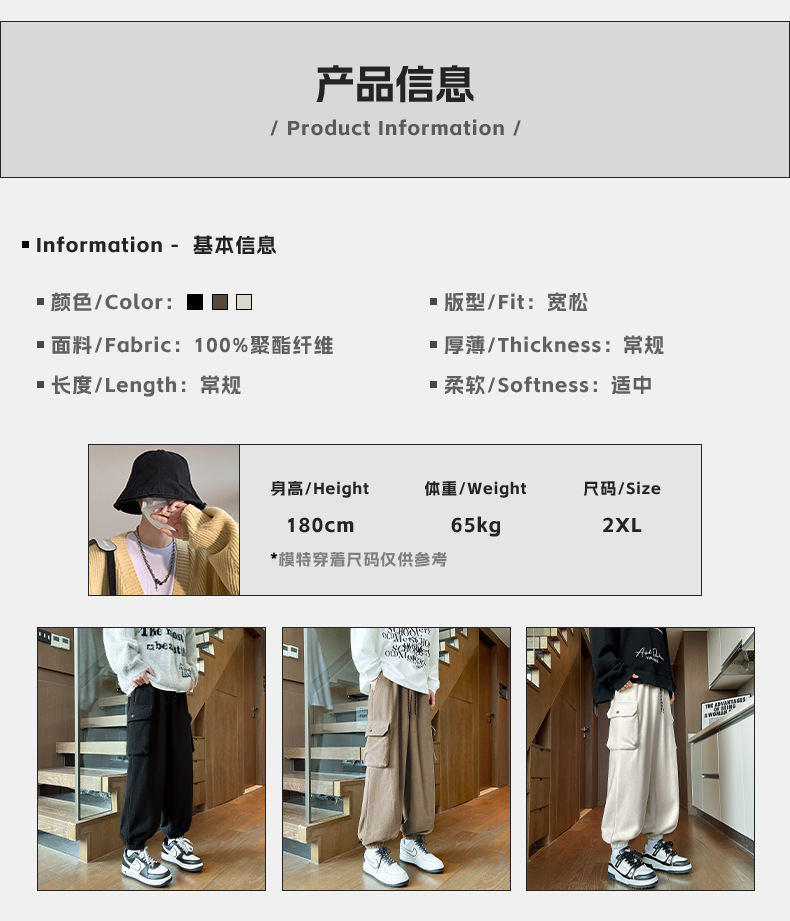 | 尺码 | M, L, XL, XXL, XXXL | 类别 | 运动休闲裤 |