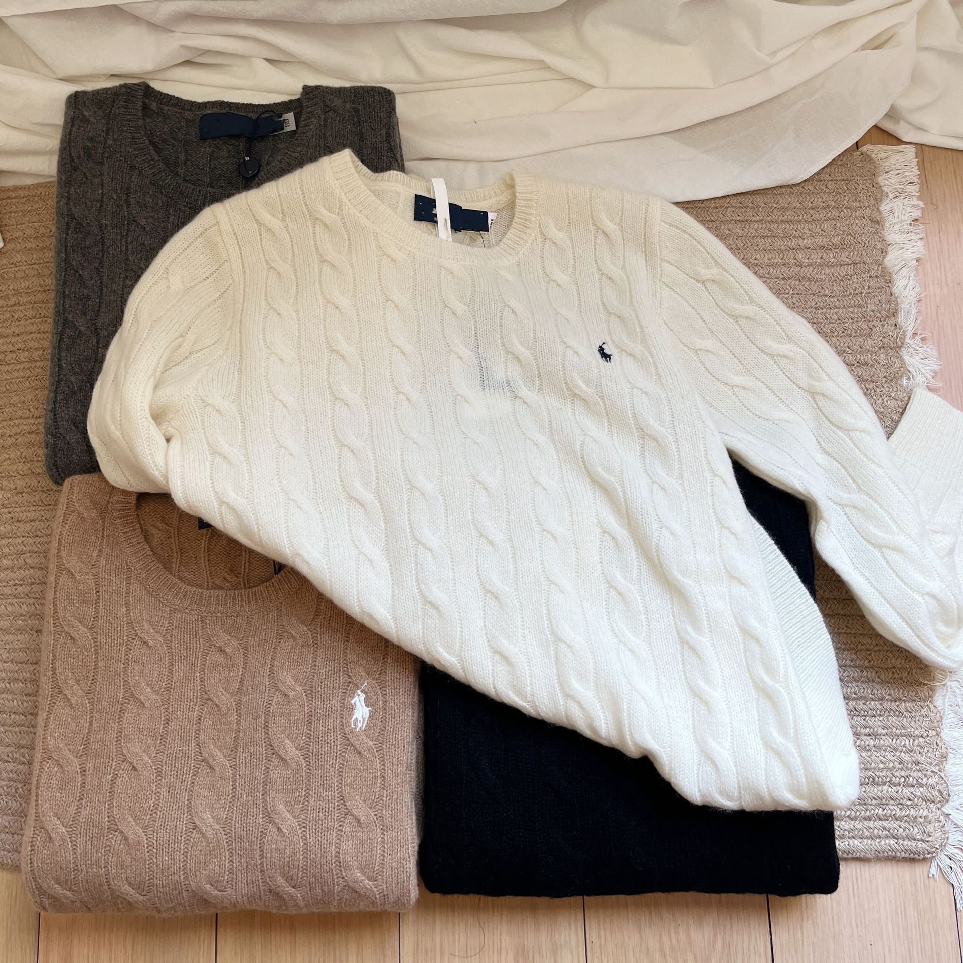 원래 대외 무역 클래식 90 울 10 캐시미어 포니 자수 울 스웨터 풀오버 크루 넥 스웨터 탑