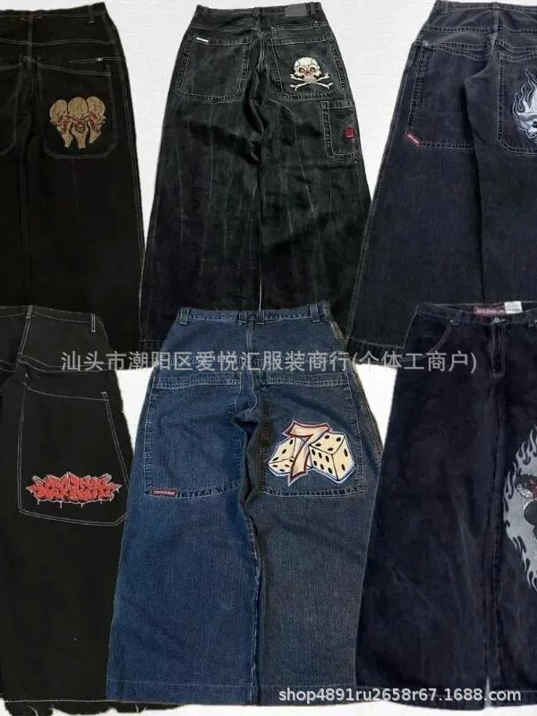 2024 봄과 가을 새로운 국경 미국 패션 브랜드 복고풍 Y2K 수 놓은 힙합 패턴 남성 청바지