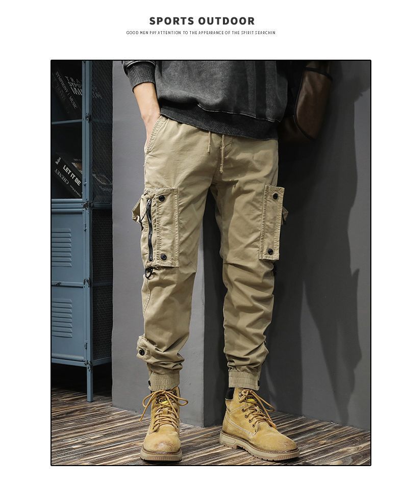 아미 카지 (Ami Kaji) 중량용 복고풍 유행 브랜드화물 바지 남성용 봄과 가을 전술 기능성 슬림 핏 다리 발가락 캐주얼 바지 트렌디