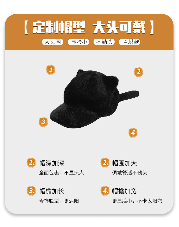 봉제 꼬리 야구 모자 가을과 겨울 여자 한국 스타일 귀여운 귀 따뜻한 오리 혀 학생 승마 모피 방풍 모자