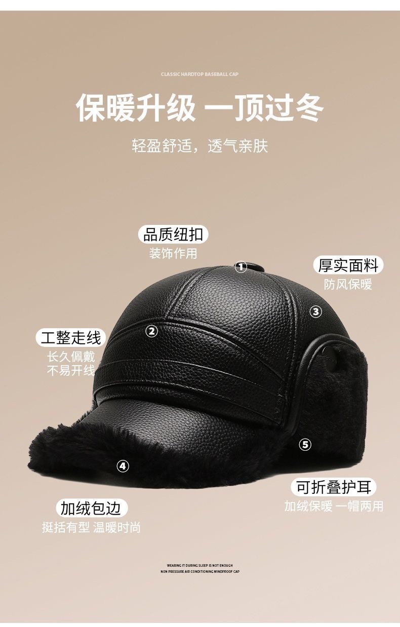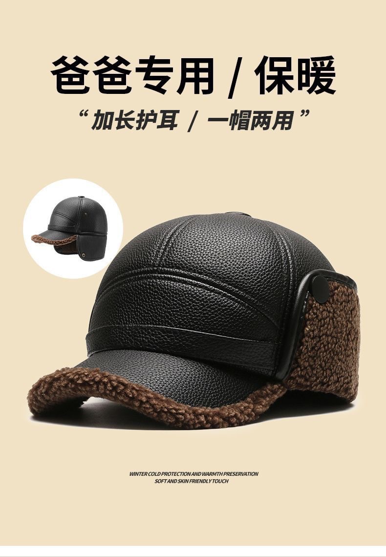 겨울 중년 및 노인 아빠 레이 펑 모자 기모 두꺼운 남자의 겨울 귀 보호 따뜻한 노인 모자 겨울 모자