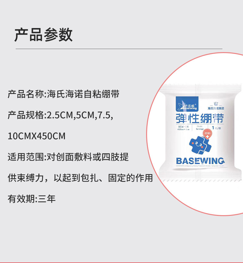 | 一次性使用 | 是 | 规格 | 海氏海诺倍适威弹力自粘绷带5*450cm*1卷, 倍适威弹力自粘绷带2.5*450cm*1卷, 倍适威弹力自粘绷带7.5*450cm*1卷, 倍适威弹力自粘绷带10*450cm*1卷, A274海诺弹力自粘绷带2.5*450cm X 1卷, A038海诺自粘弹性绷带5*450cmX1卷, A039海诺弹力自粘绷带7.5*450cm X 1卷, A273海诺自粘弹性绷带10*450cmX 1卷, 护指自粘绷带蓝色, 护指自粘绷带粉色, 海氏海诺 控销ZD95(H).弹性绷带-04 450cm*7.5cm—1袋, 海氏海诺 控销ZD94(H).弹性绷带-04 450cm*5cm—1袋 |