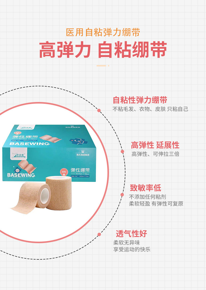 Heshe Hainuo Bei Weiwei 붕대 의료 통기성 스포츠 고정 붕대 탄성 자기 접착 붕대