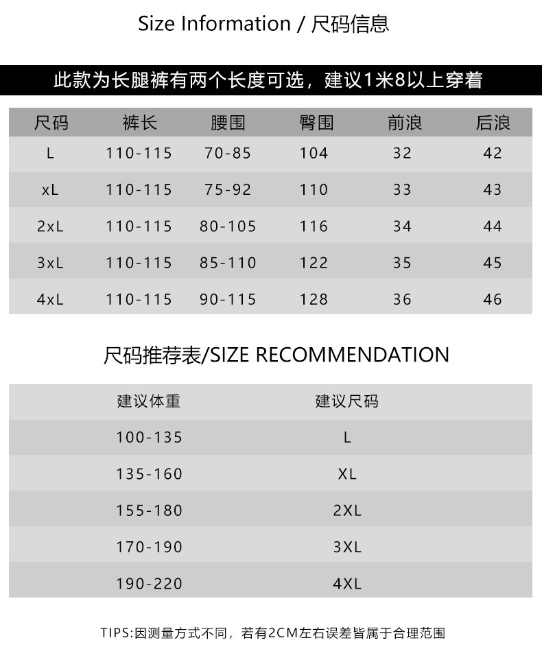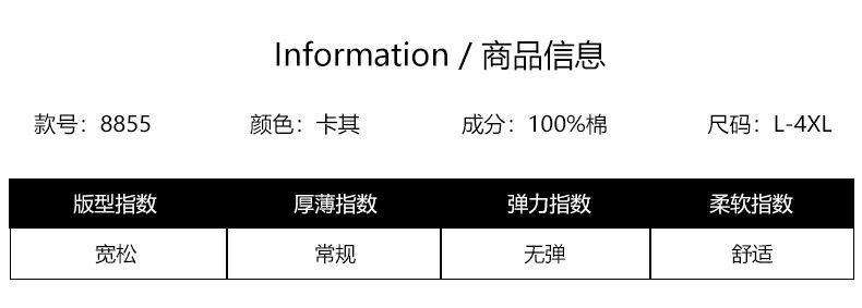 | 颜色 | 卡其布色-裤长110cm, 卡其布色-裤长115cm | 尺码 | L, XL, 2XL, 3XL, 4XL |