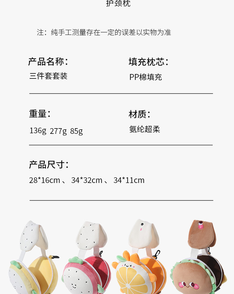 | 颜色 | 紫色火龙果枕, 汉堡枕, 黄色火龙果枕, 橘子枕, 紫色颈枕, 咖啡颈枕, 黄色颈枕, 橘色颈枕, 棒棒锤紫色, 棒棒锤咖啡, 棒棒锤黄色, 棒棒锤橘色 | 是否有专利 | 否 |