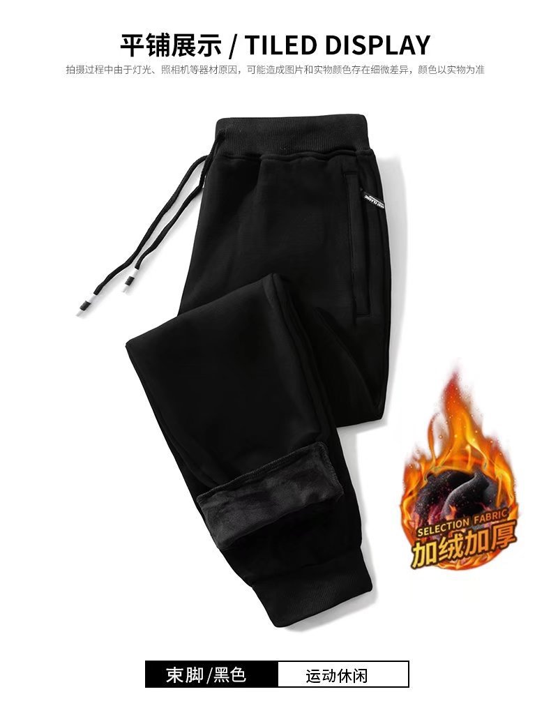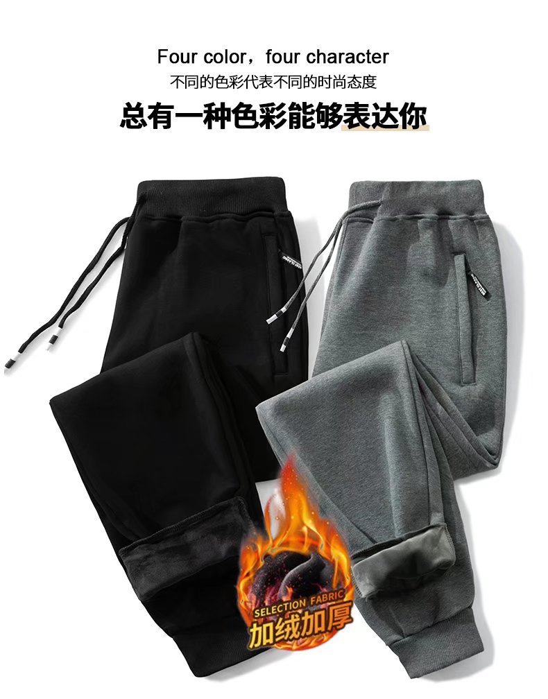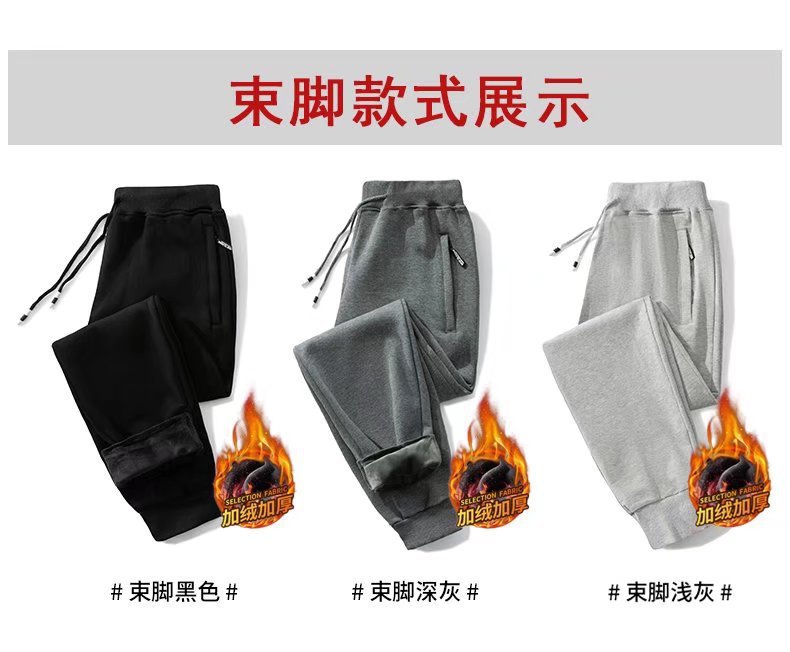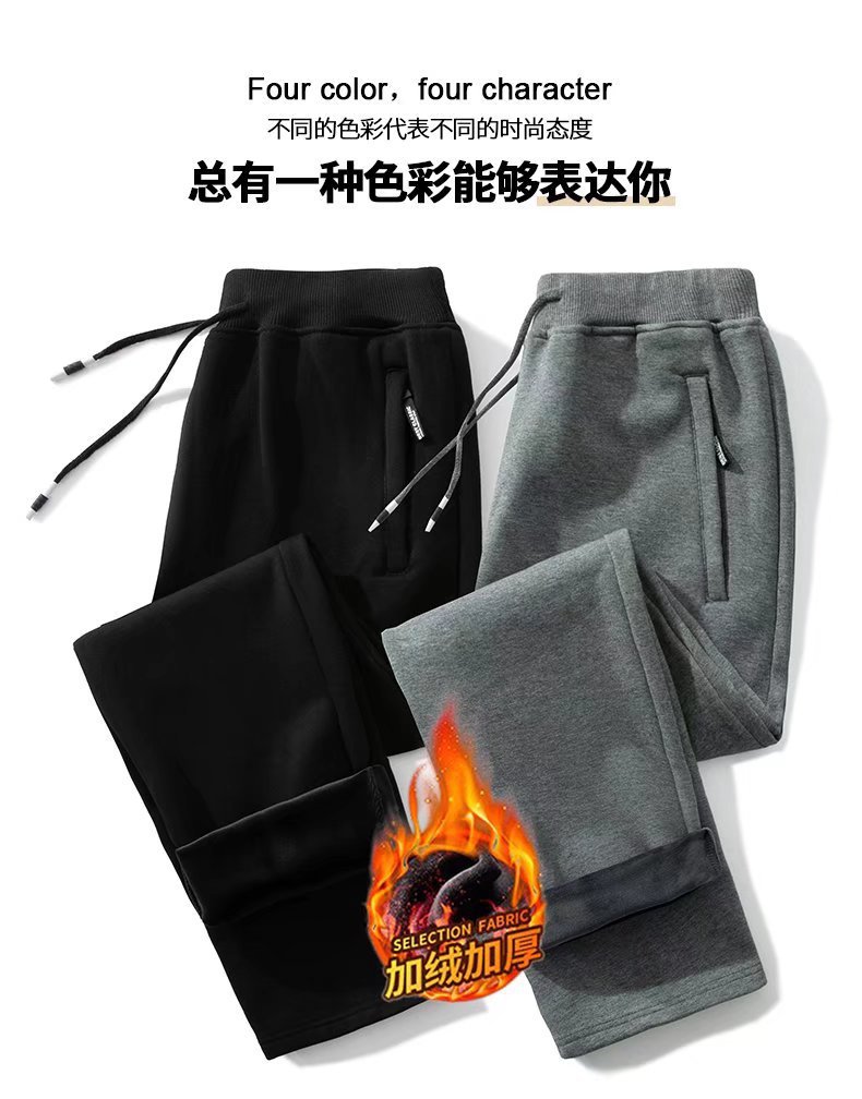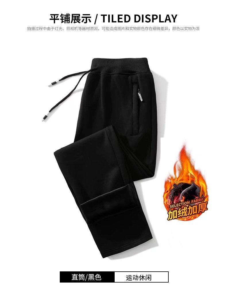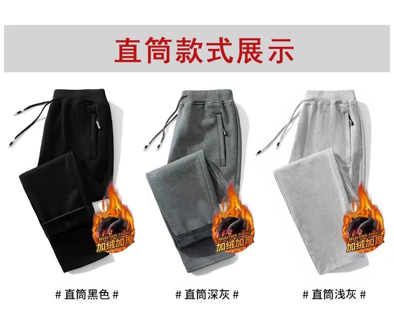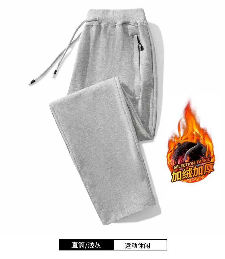봄 가을과 겨울 단색 지퍼 캐주얼 바지 스트레이트 레그 스포츠 바지 남성용 느슨한 기모 두꺼운 초대형 바지