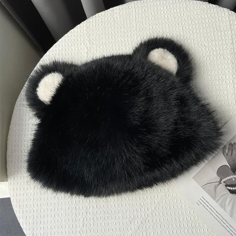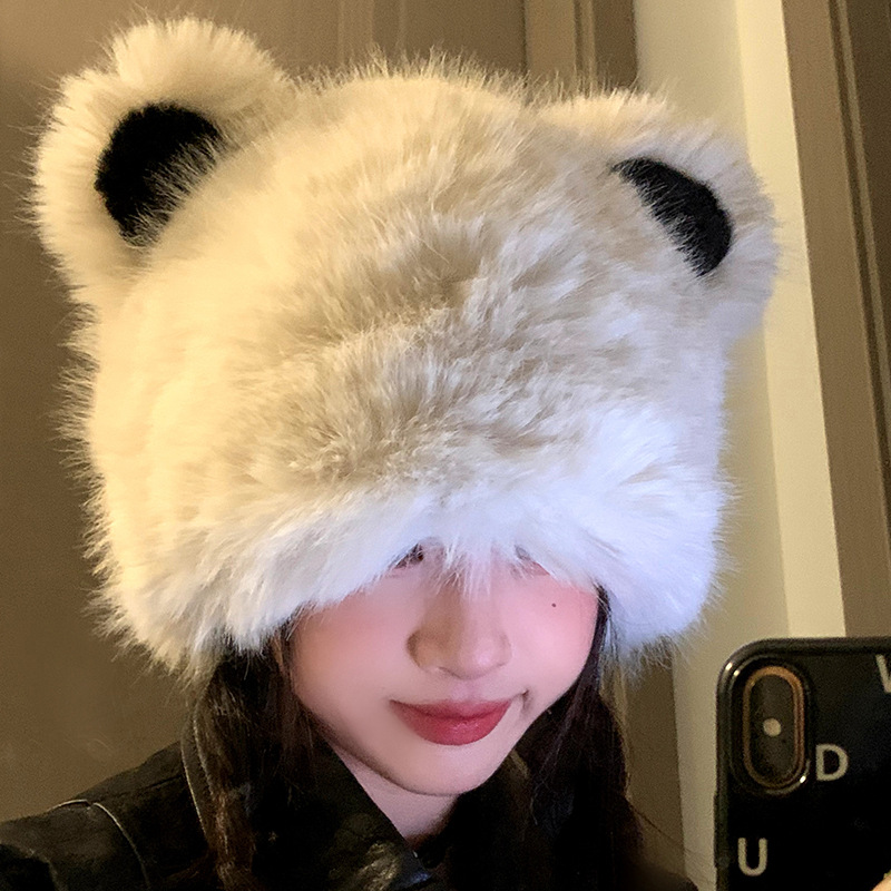 가짜 모피 귀여운 곰 모자 여성의 가을과 겨울 따뜻한 귀 보호 발가락 모자 한국식 봉제 큰 머리 와이 니트 모자