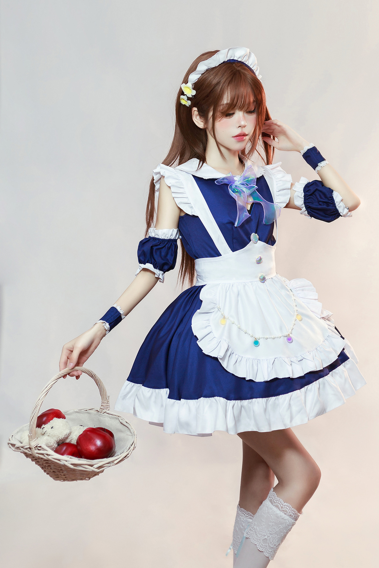 连衣裙+围裙+臂套*2+袖套*2+后背蝴蝶结+女仆头饰+头花*2+胸口蝴蝶结+贝壳饰品*3+链子*1