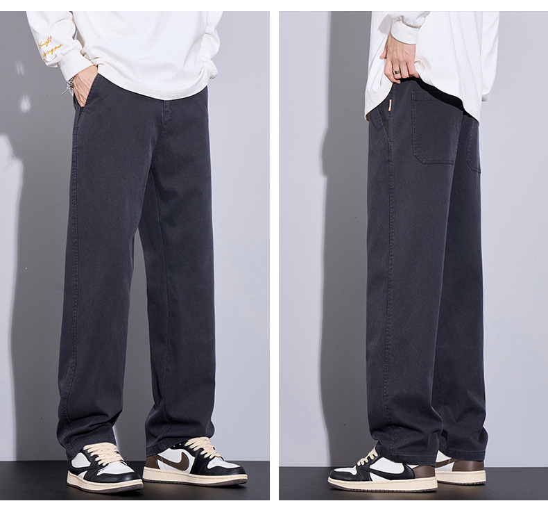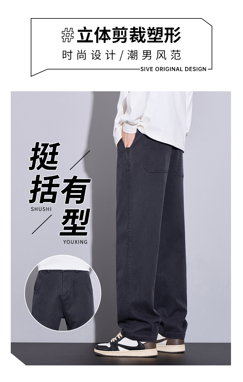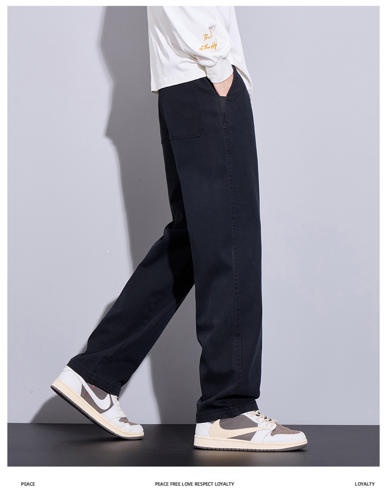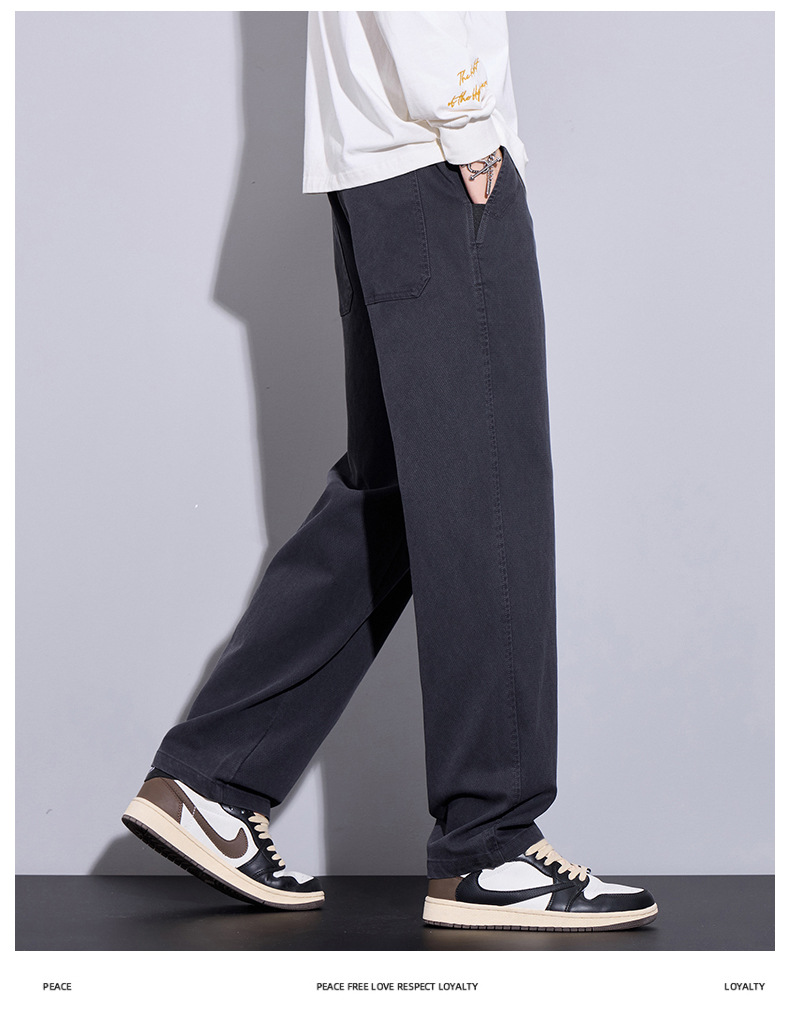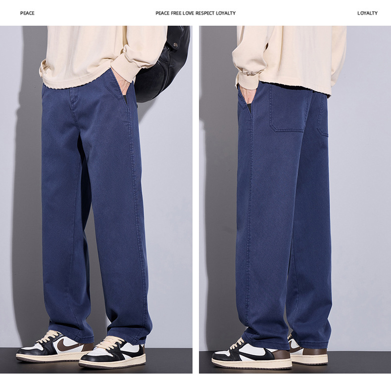 새로운 가을 두꺼운 남자 대학 스포츠 바지 고급 감각 간단한 텐셀 스트레이트 Lyocell 캐주얼 바지 남자