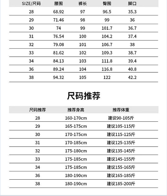 | 颜色 | 3166黑色【厚款】, 3166蓝色【厚款】, 3166灰色【厚款】, 3166咖啡【厚款】, 3166黑色加绒, 3166蓝色加绒, 3166灰色加绒, 3166咖啡加绒 | 尺码 | 28(2尺1)100斤, 29(2尺2)110斤, 30(2尺3)120斤, 31(2尺4)130斤, 32(2尺5)140斤, 33(2尺6)150斤, 34(2尺7)160斤, 36(2尺8-9)180斤, 38(3尺)200斤 |