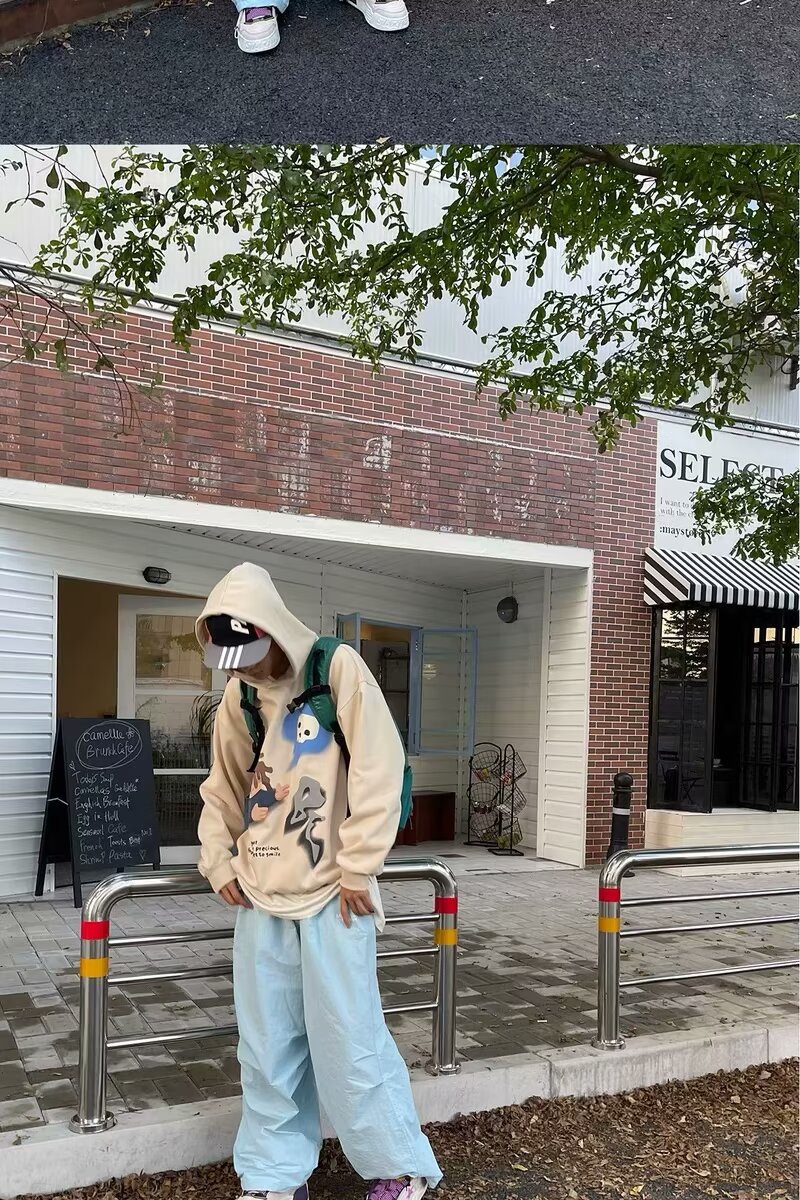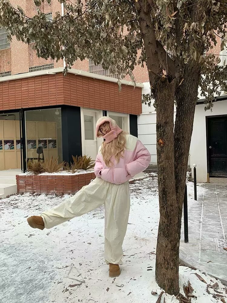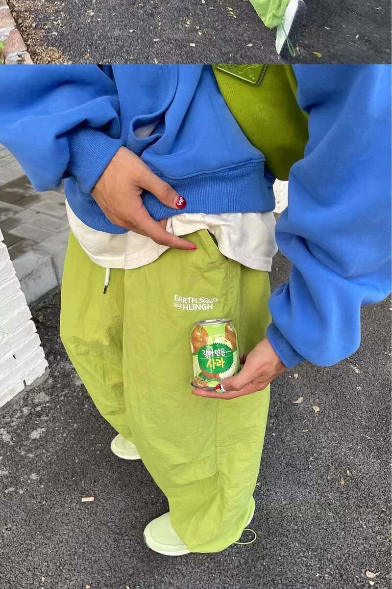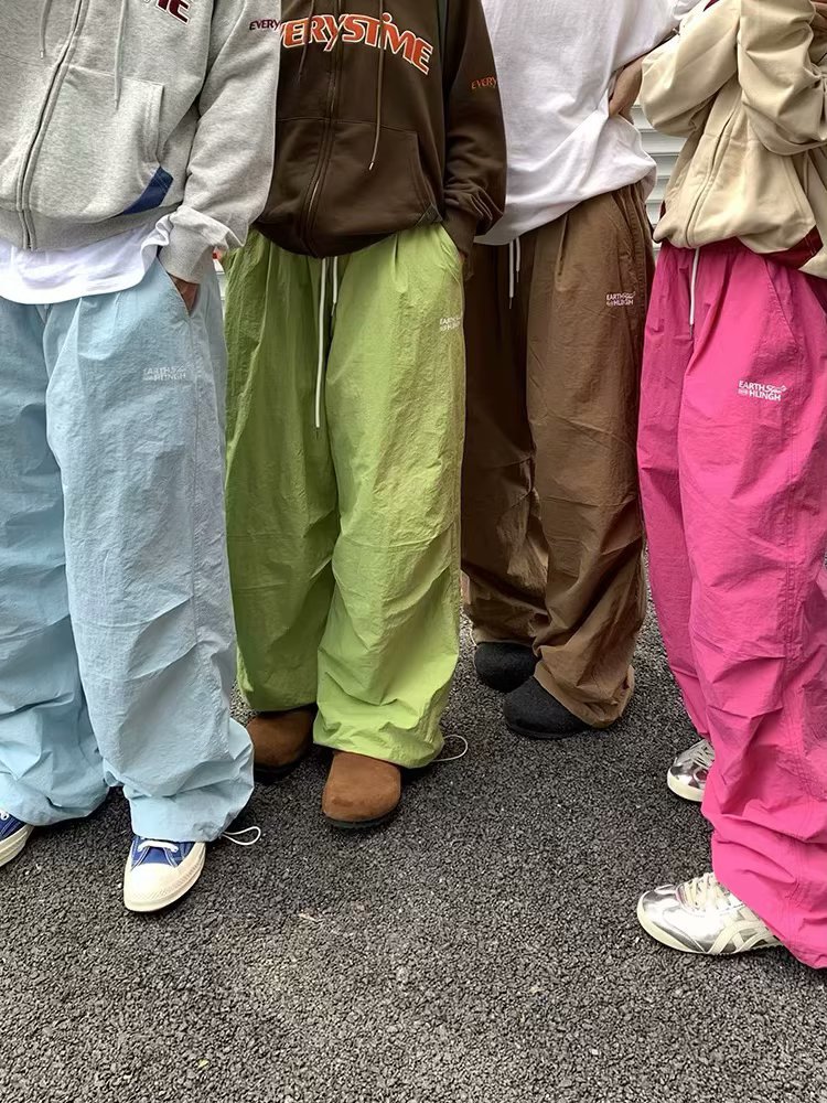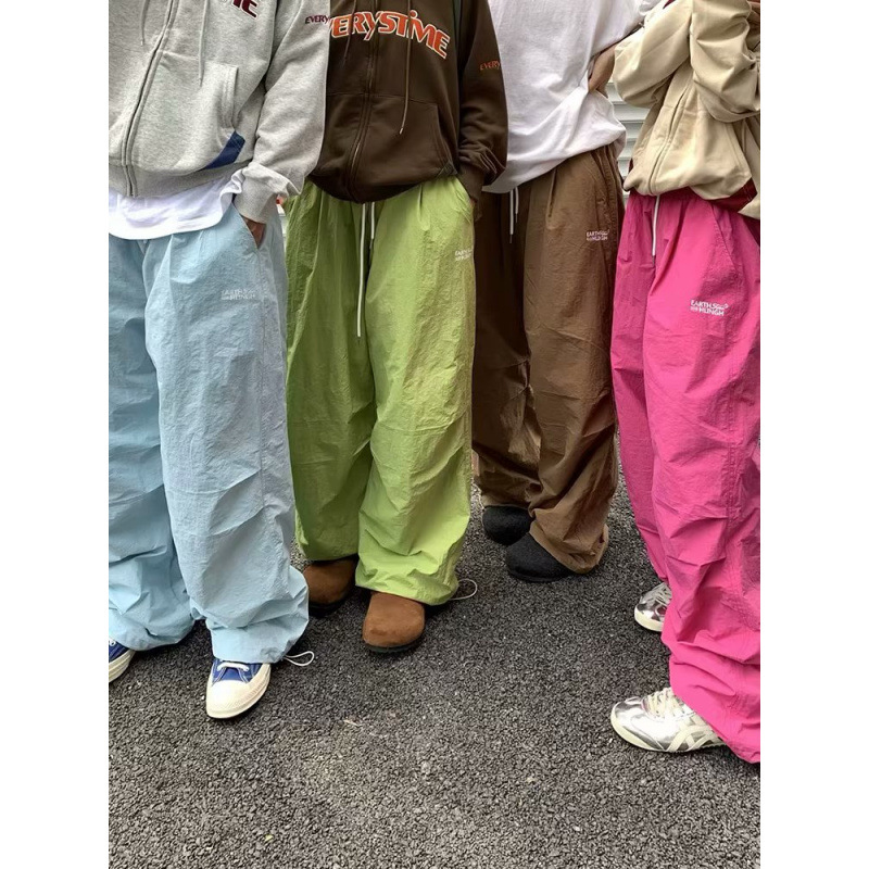 도파민 낙하산 바지 남성 겨울 패션 브랜드 기모 캐주얼 커버 미국 느슨한 커플 캐주얼 와이드 레그 바지