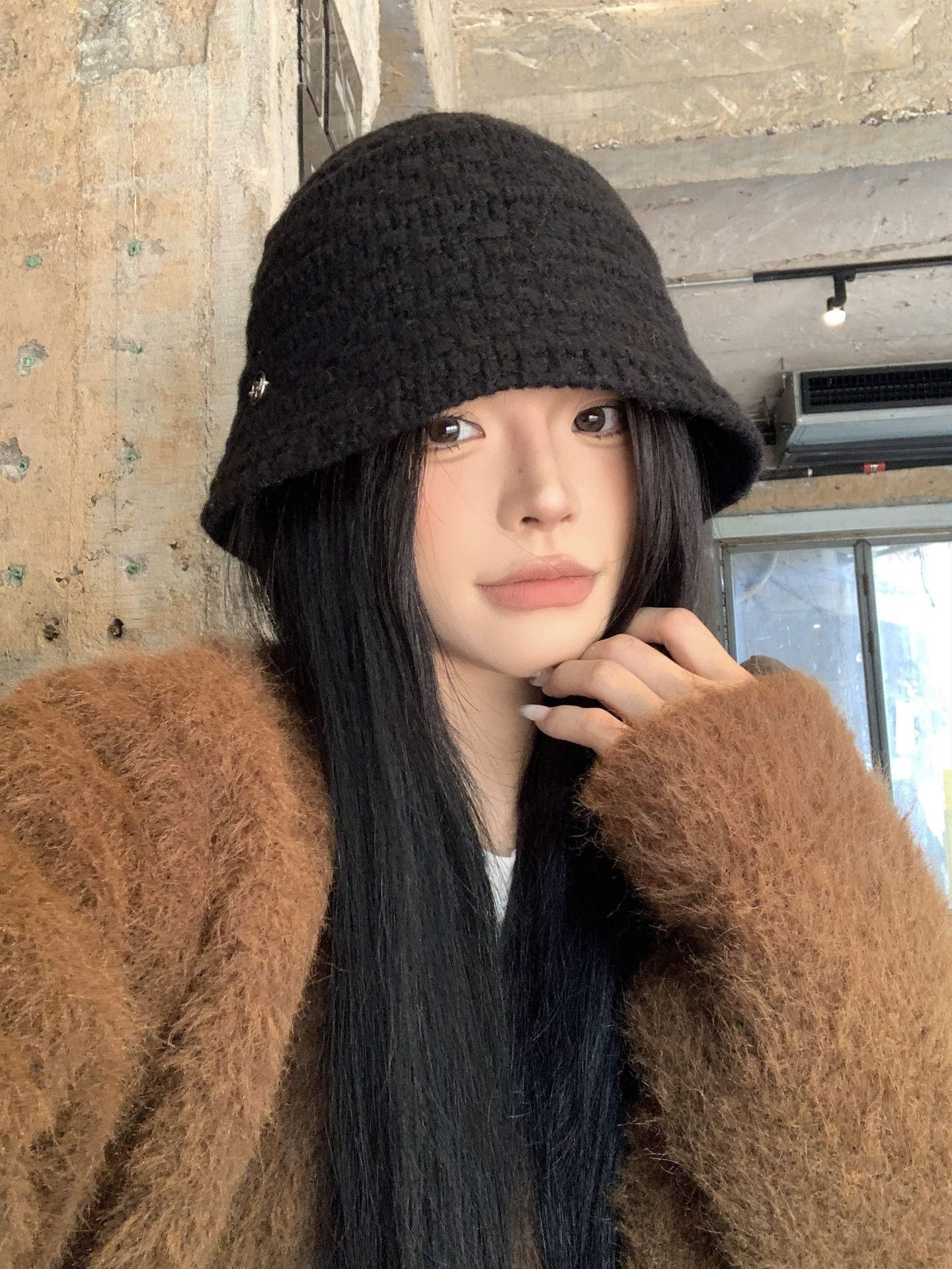 가을과 겨울 새로운 스프레이 양모 철 분지 모자 접이식 짠 야외 올 매치 따뜻한 울 모자 트렌드의 한국어 버전