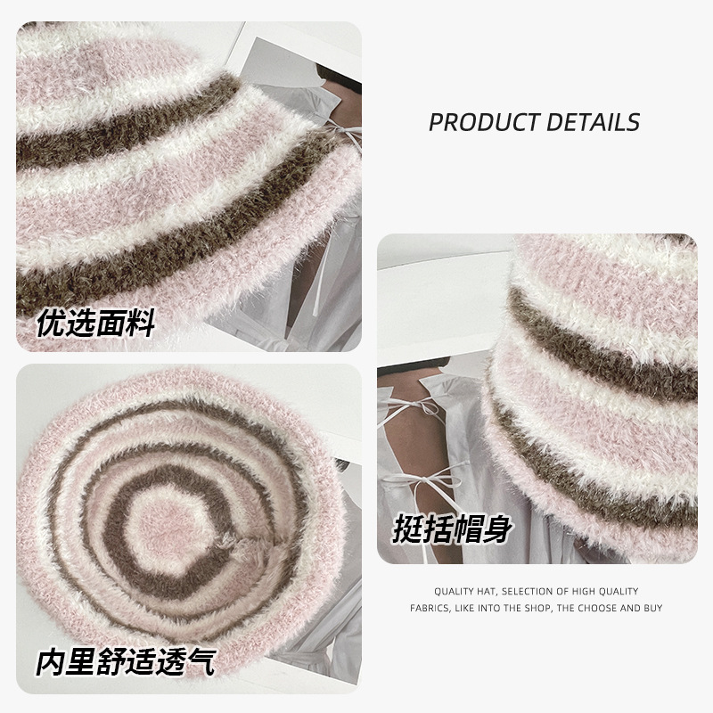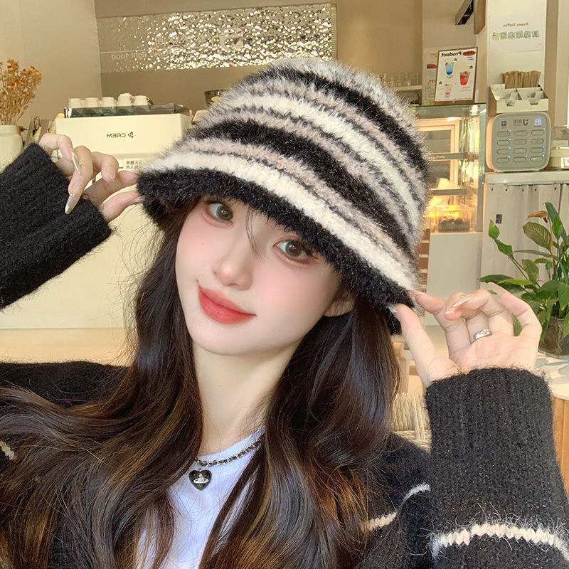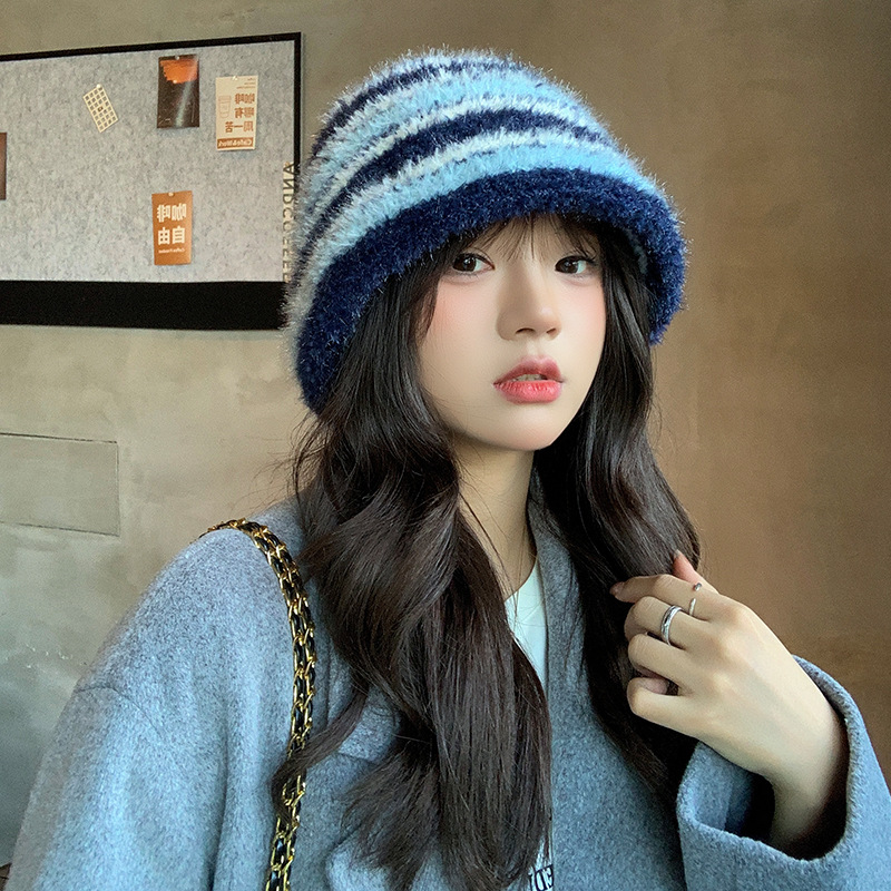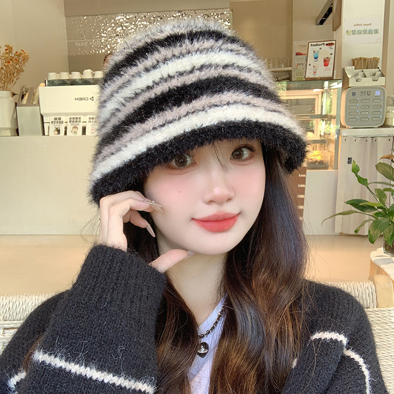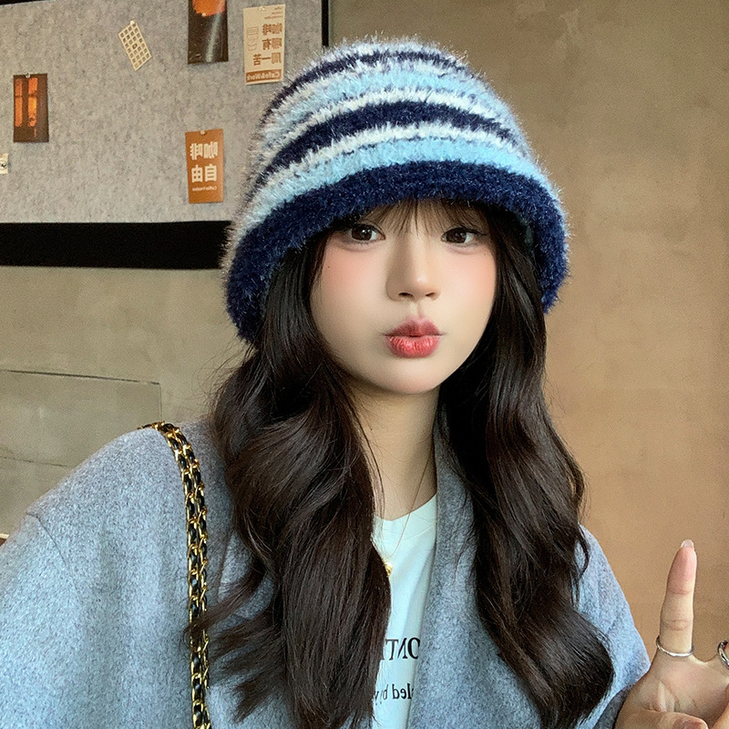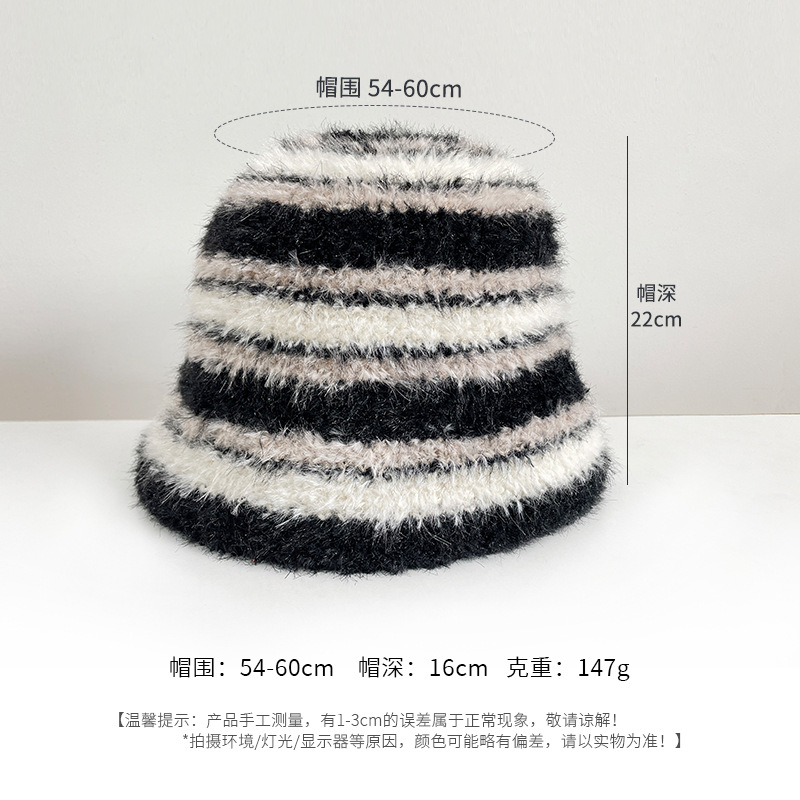 인터넷 축하 어부 모자 여성의 가을 · 겨울 한국식 줄무늬 니트 모자 올매치 귀여운 양동이 모자 양모 분지 모자