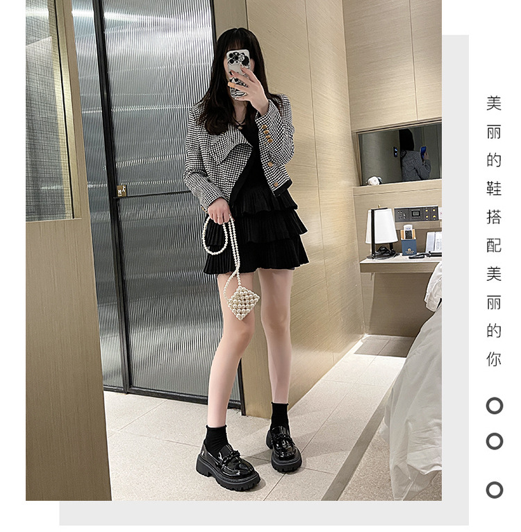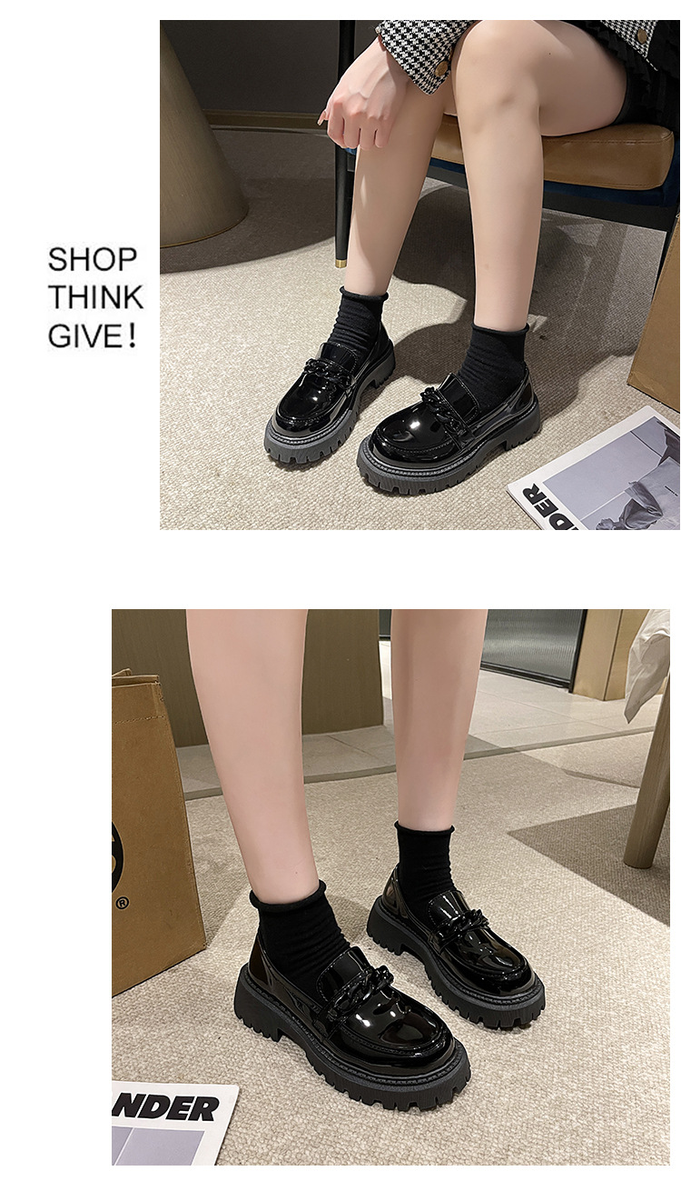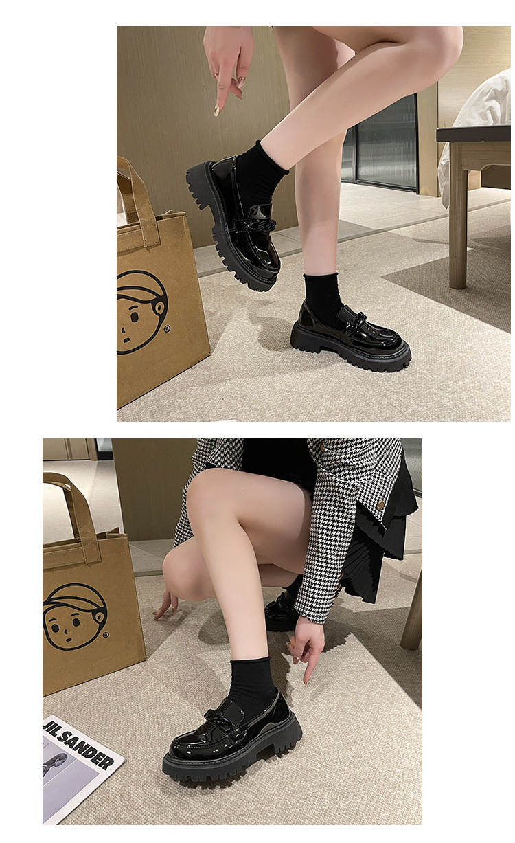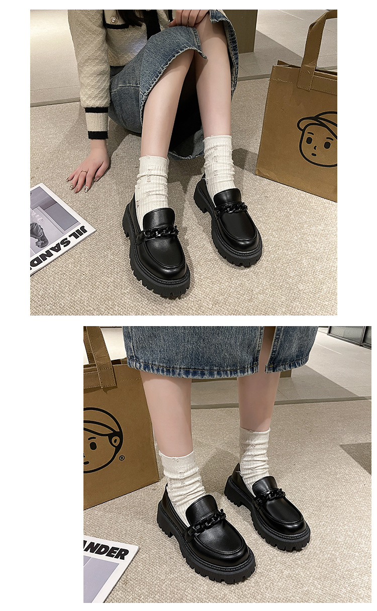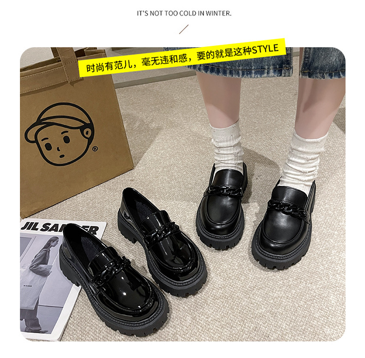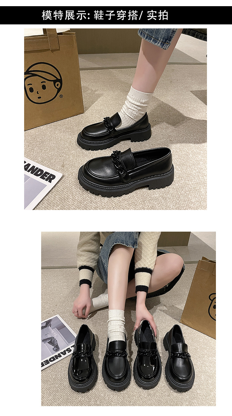 플러스 사이즈 Lefu 작은 가죽 신발 여성 2023 검은 두꺼운 밑창 복고풍 봄과 가을 영국 스타일 작은 가죽 신발 여성 일본 스타일 작은 싱글 레이어 신발