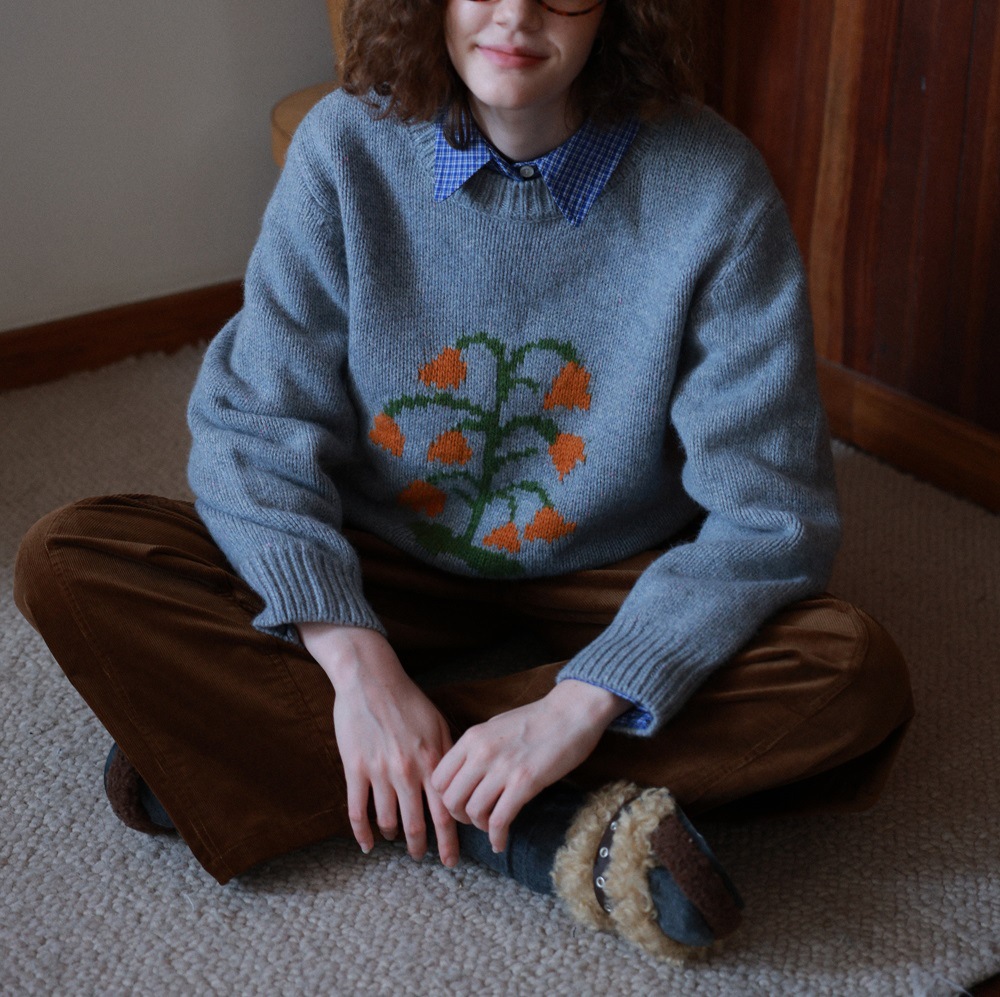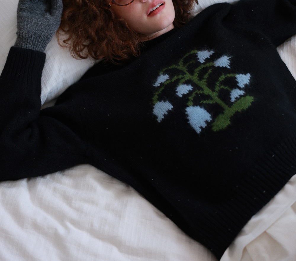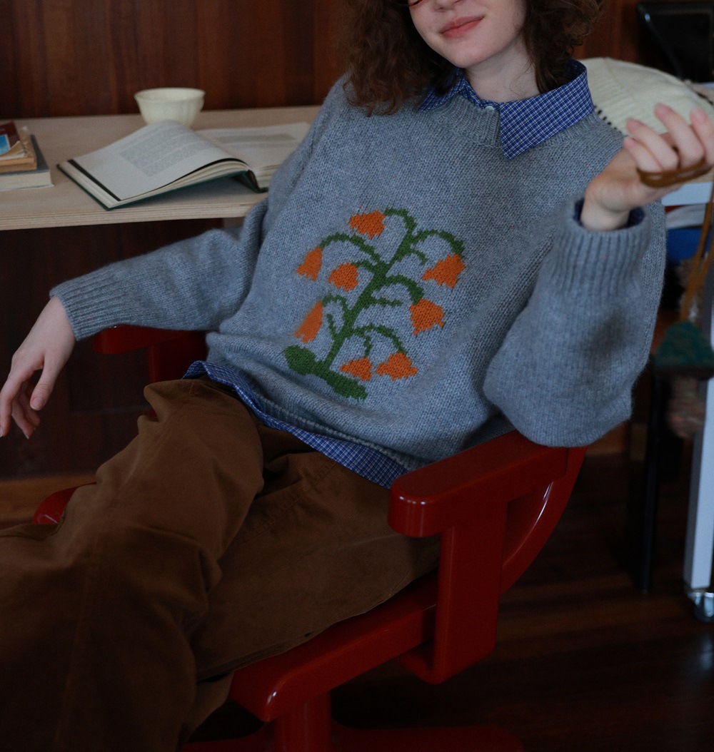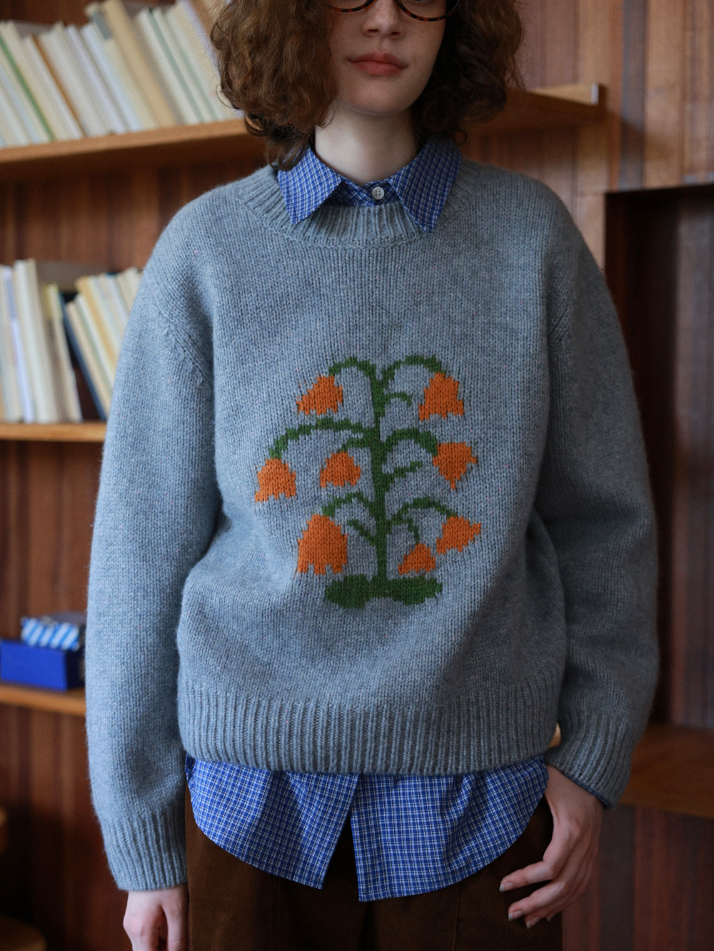 이 문제는 무겁습니다! 메리노 울 & 너구리 벨벳 릴리 오브 더 럼 자카드 투톤 풀오버 니트 스웨터