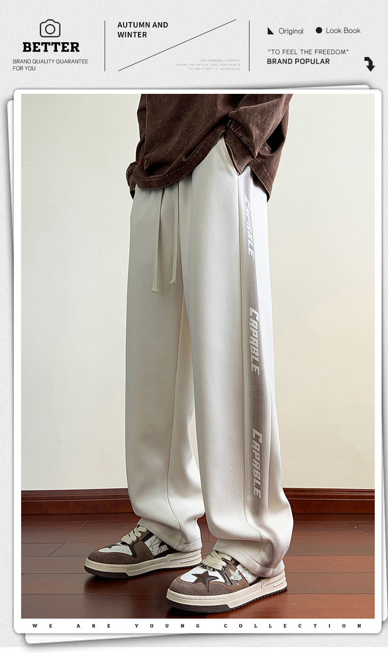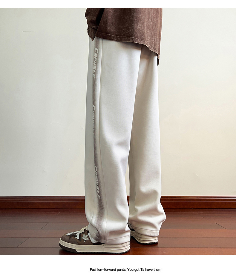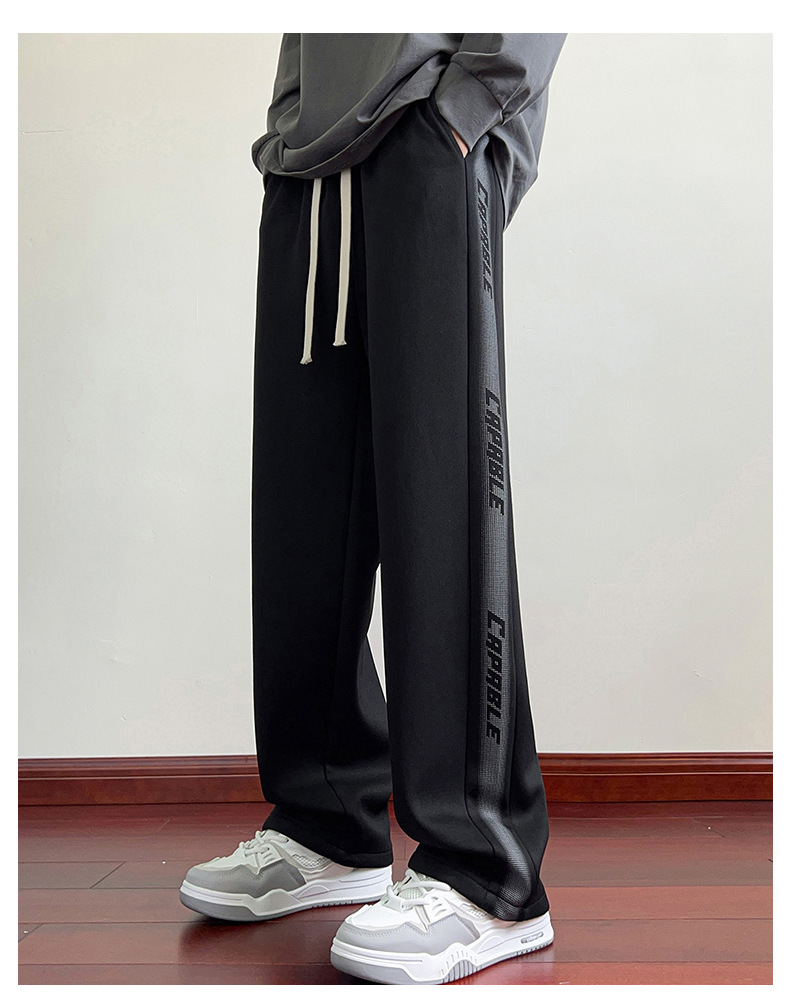 2025 신상 트렌디 아메리칸 스타일 스트라이프 캐주얼 스포츠 팬츠 남성용 봄 가을 루즈핏 와이드 팬츠