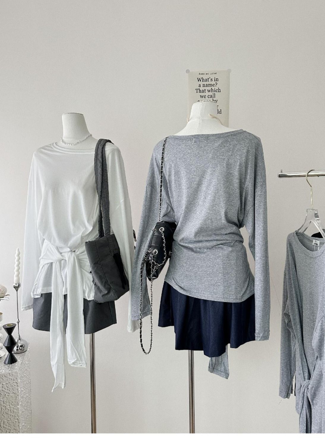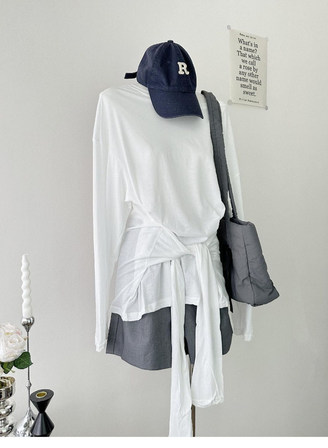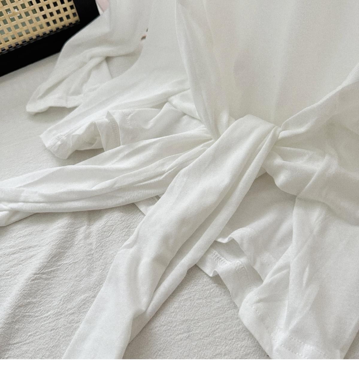 게으른 스타일 레이스 업 가짜 투피스 디자인 센스 타이트 허리 스트랩 느슨한 얇은 선 스크린 셔츠 여름 긴팔 티셔츠