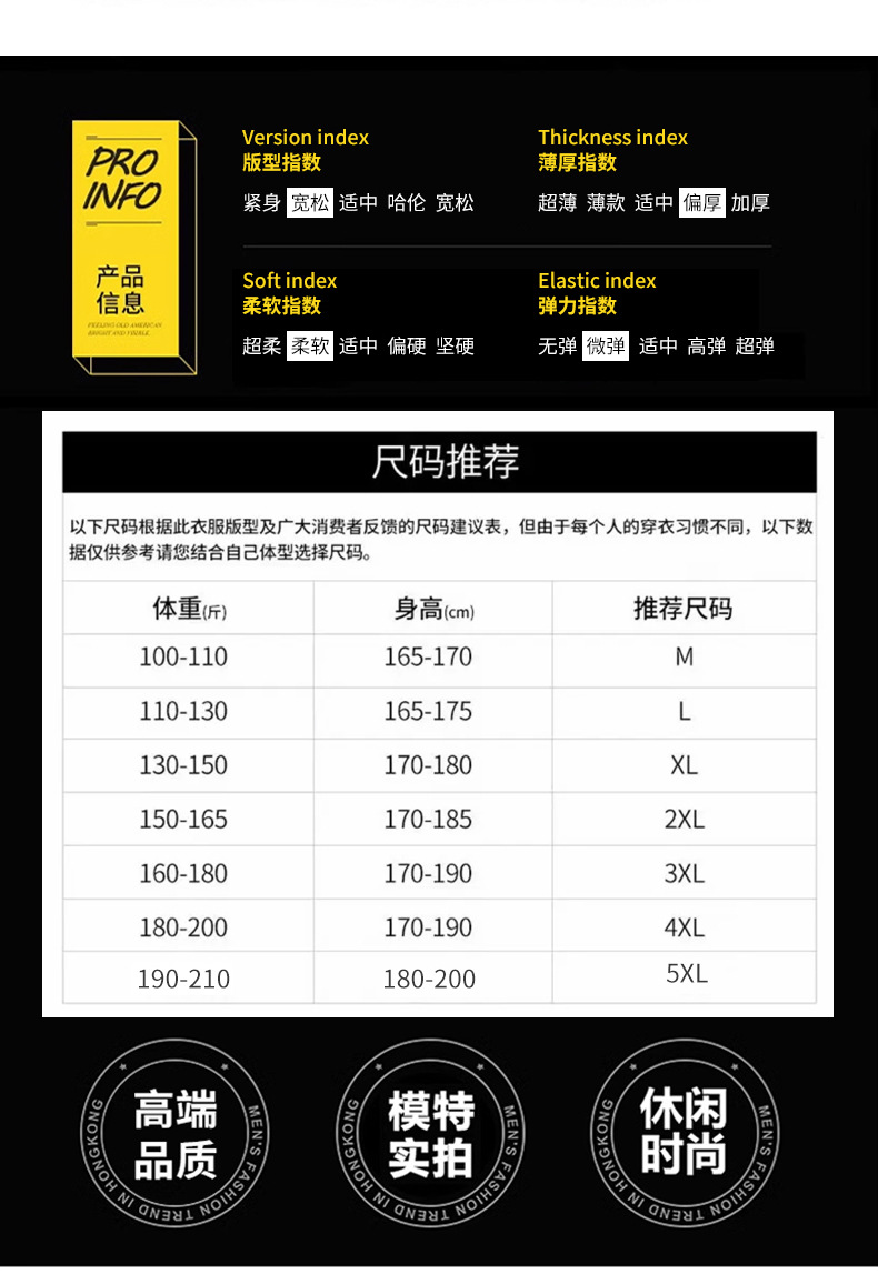 | 颜色 | 116黑色, 116摩登灰, 116墨绿色 | 尺码 | M(100斤), L(120斤), XL(140斤), XXL(160斤), 3XL(175斤), 4XL(190斤), 5XL(205斤) |