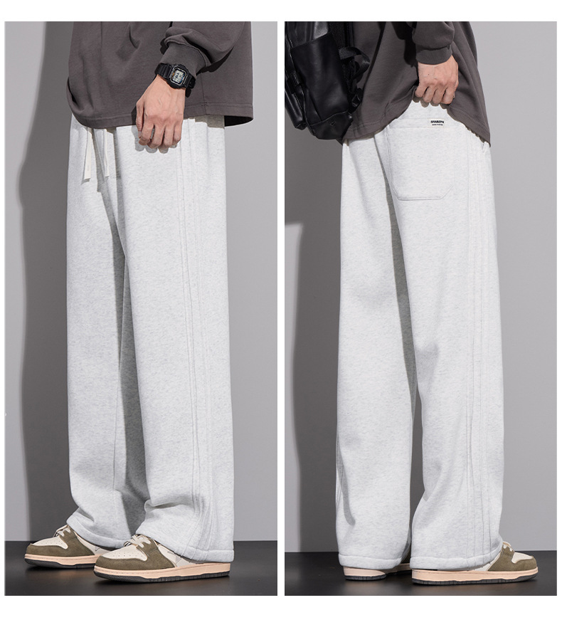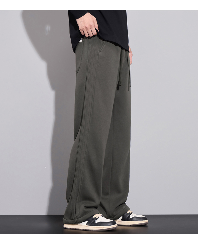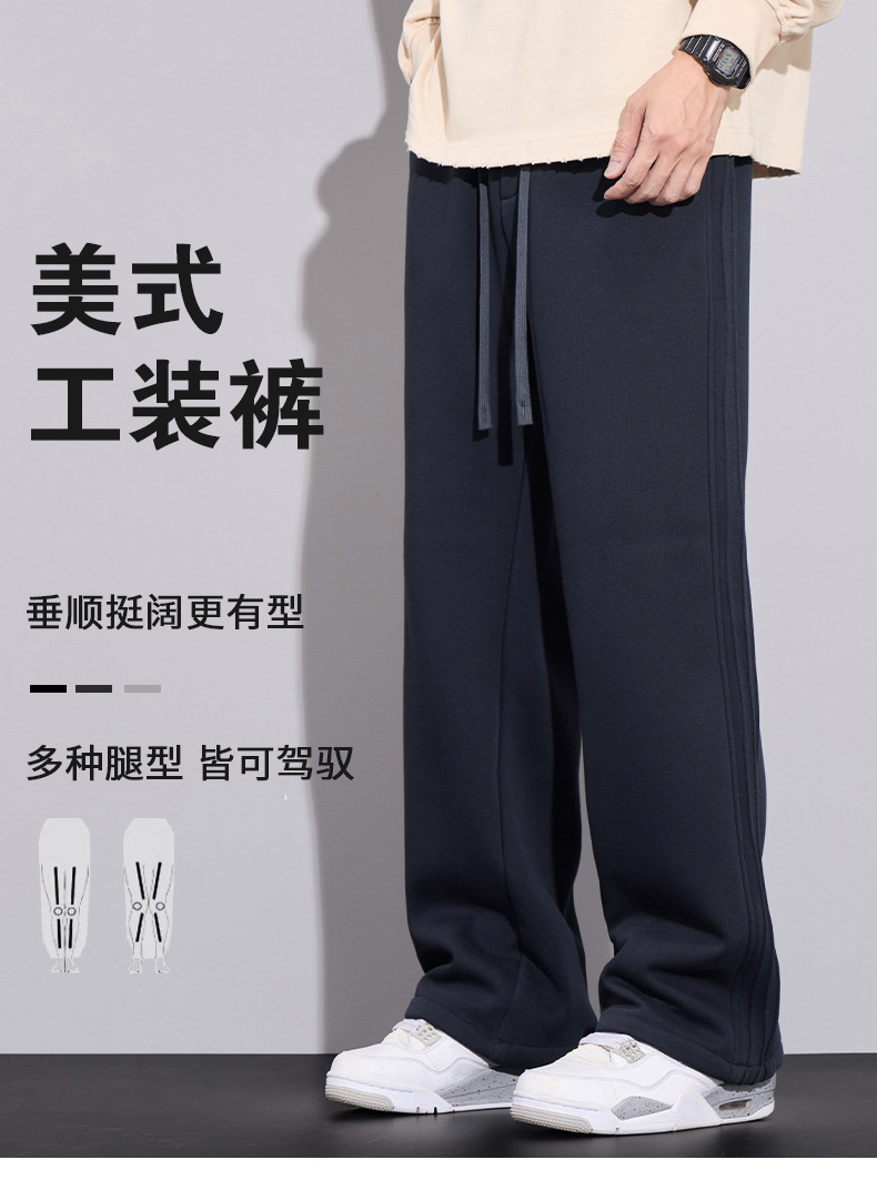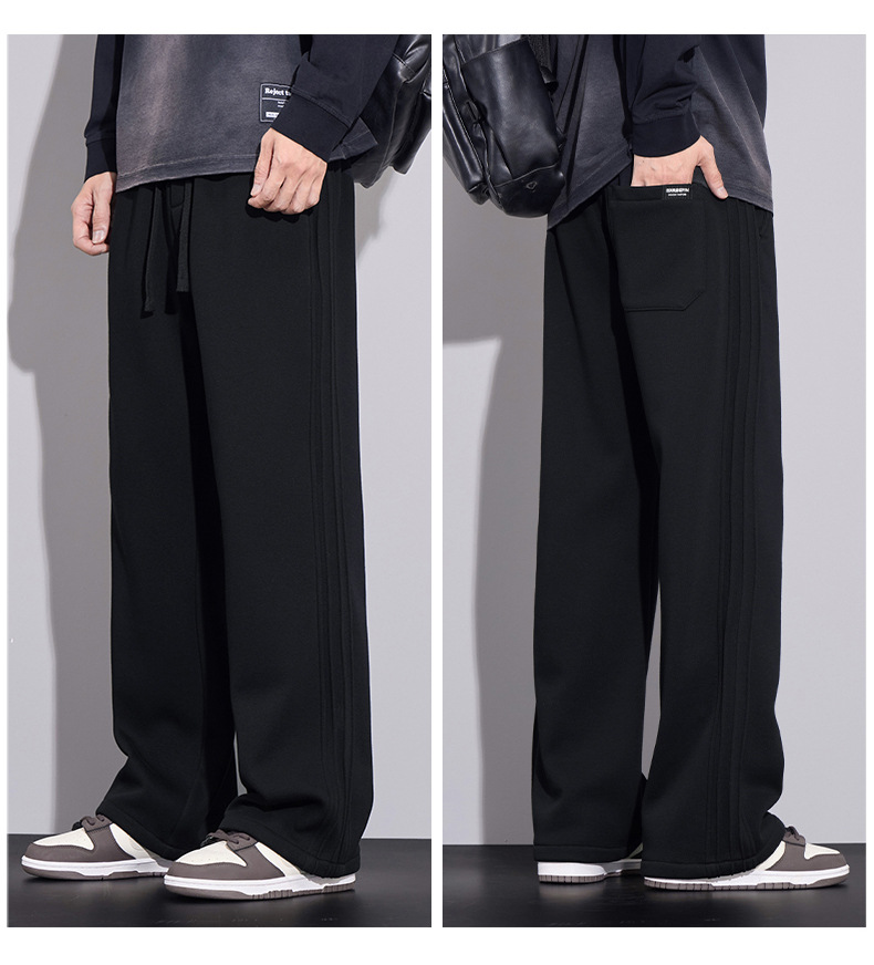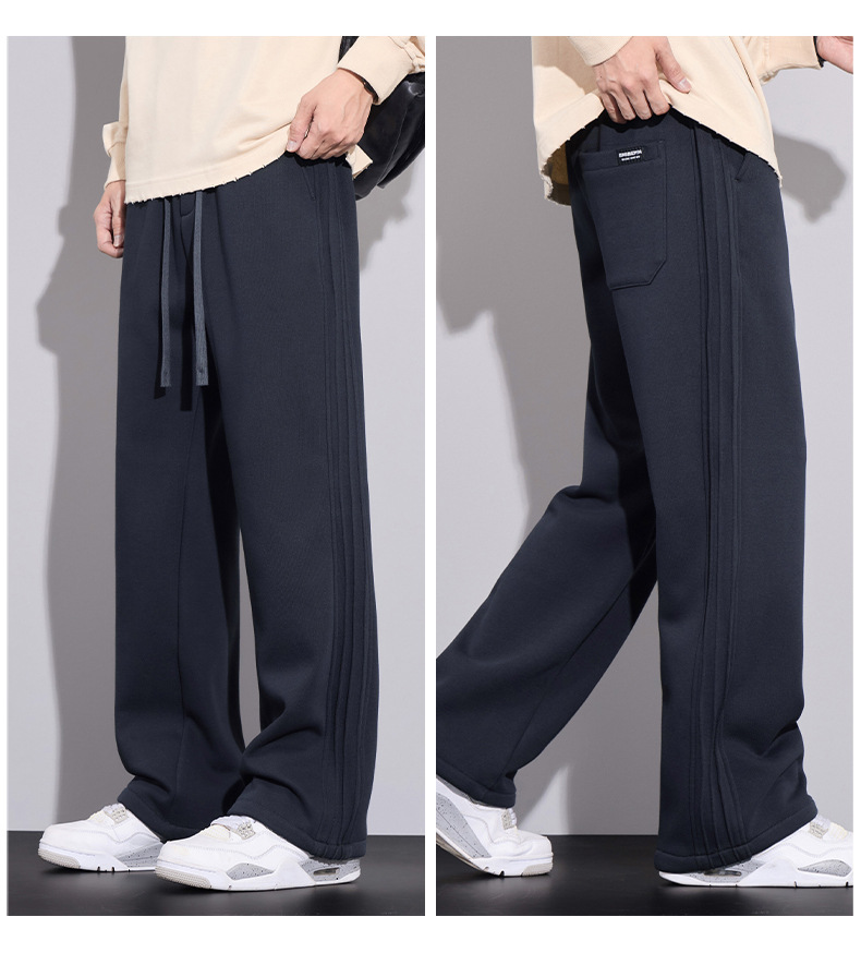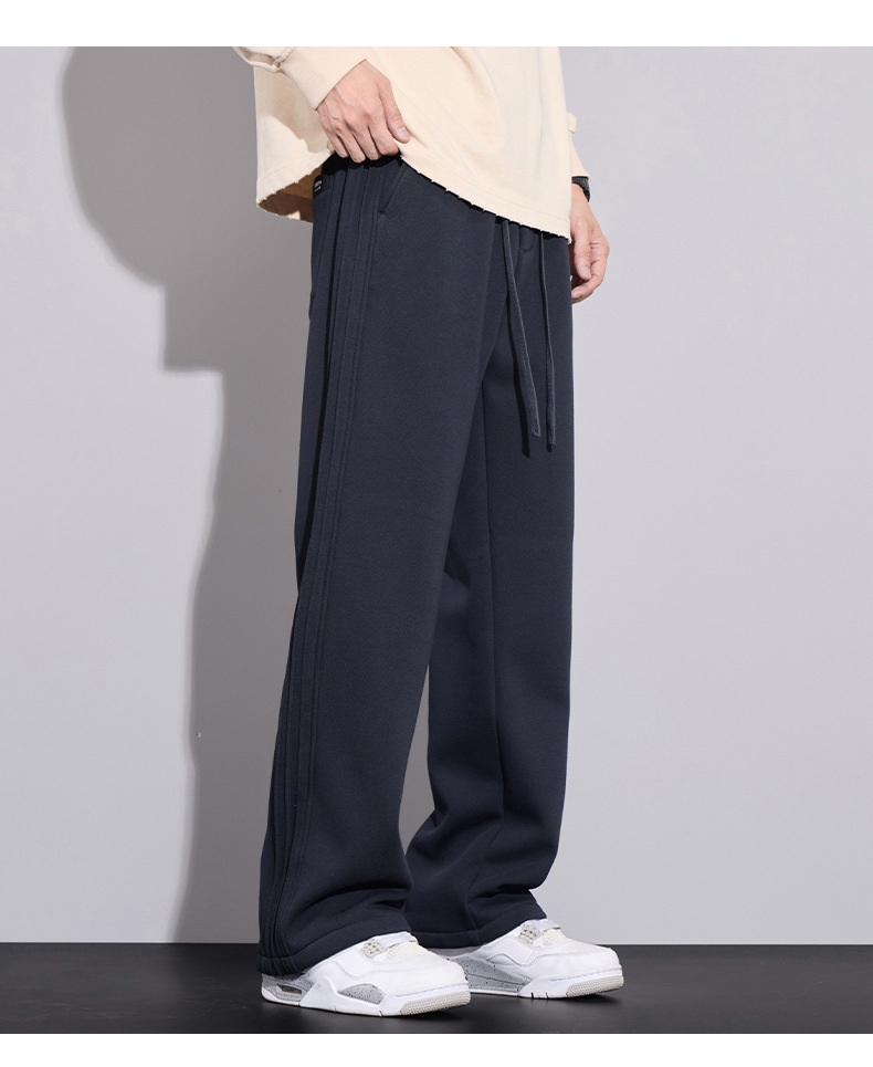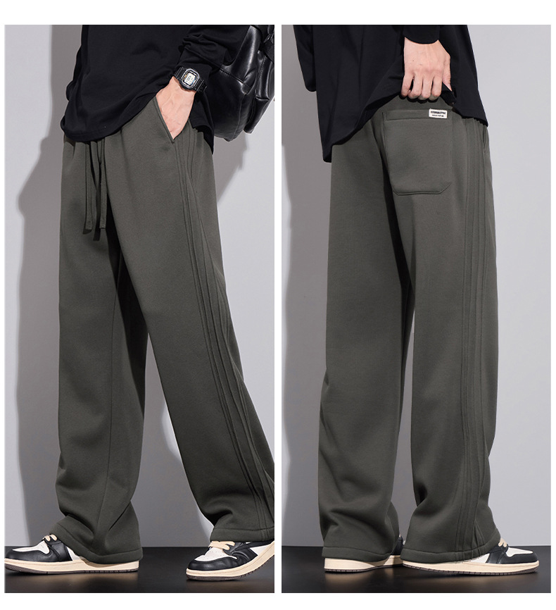 브랜드 남성용 젊은 스트레이트 바지 미국 스타일 새로운 가을과 겨울 느슨한 패셔너블 니트 3 바 캐주얼 바지 남성용