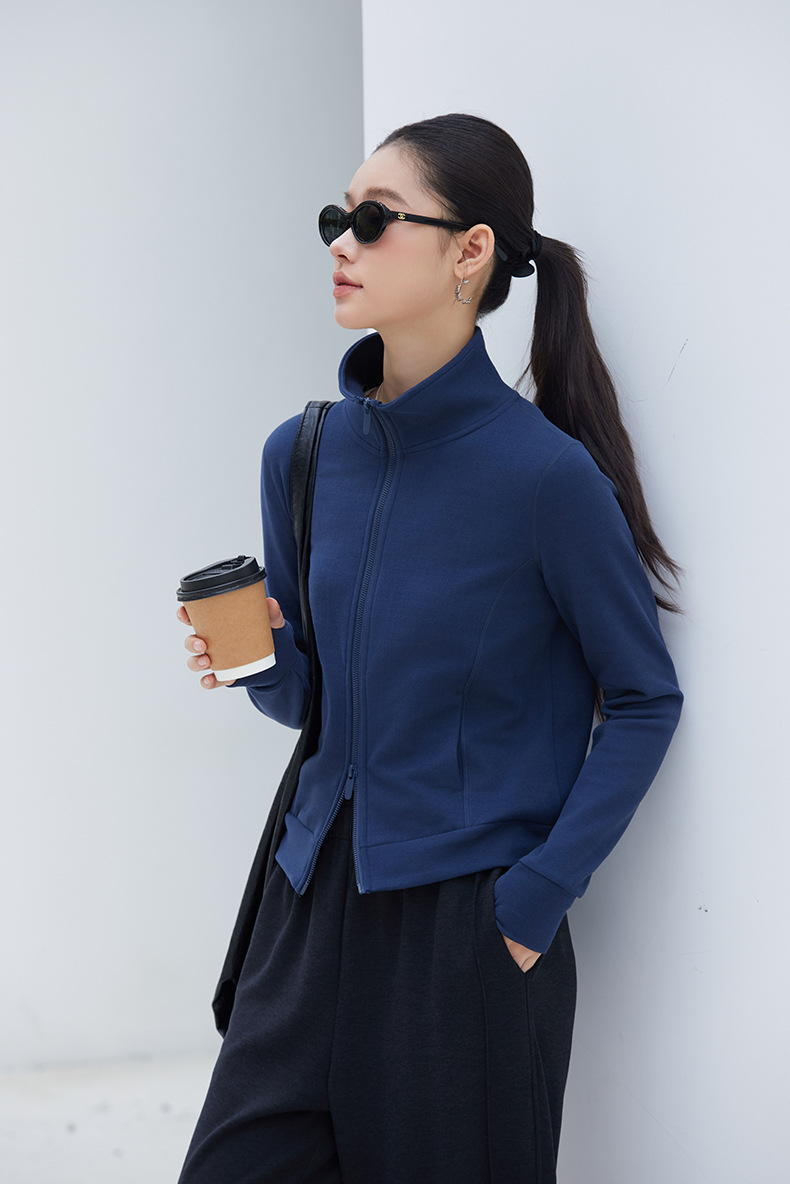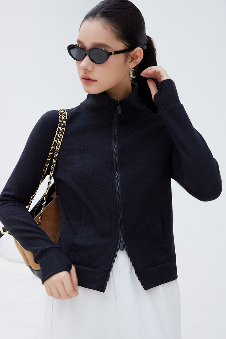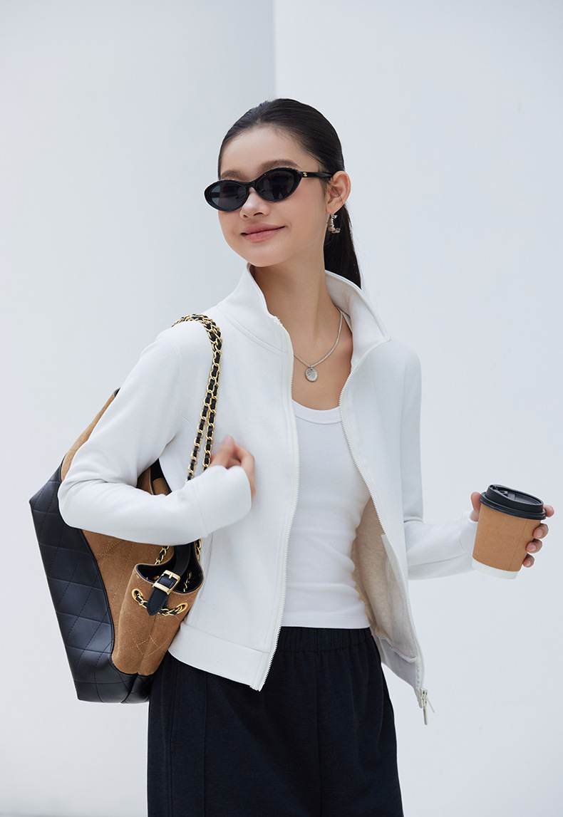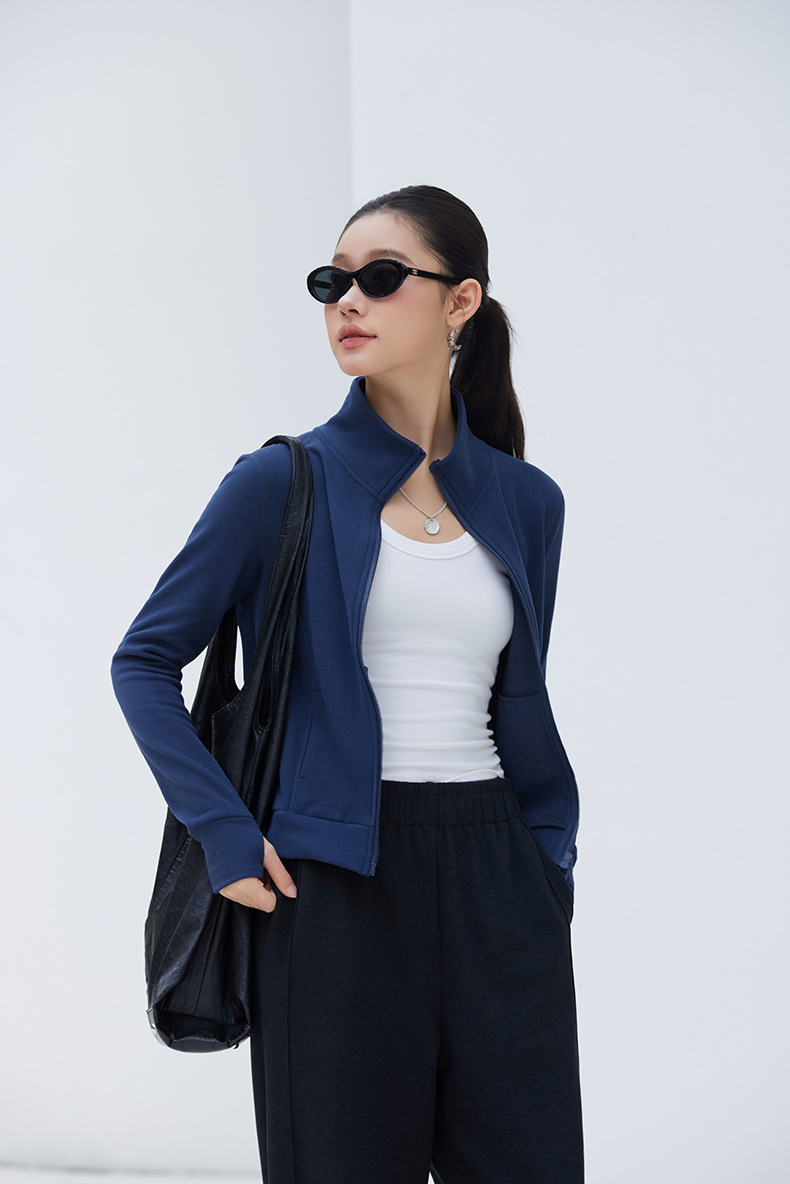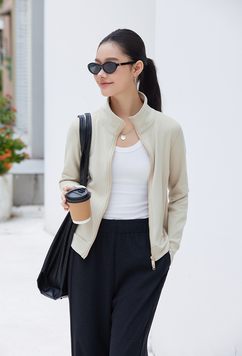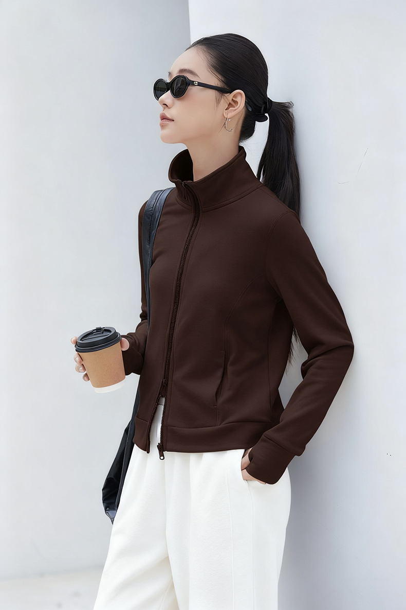 2025년 신상품 가벼운 따뜻한 벨벳 스탠드 칼라 슬림핏 더블 지퍼 레트로 스타일 여성용 스포츠 재킷