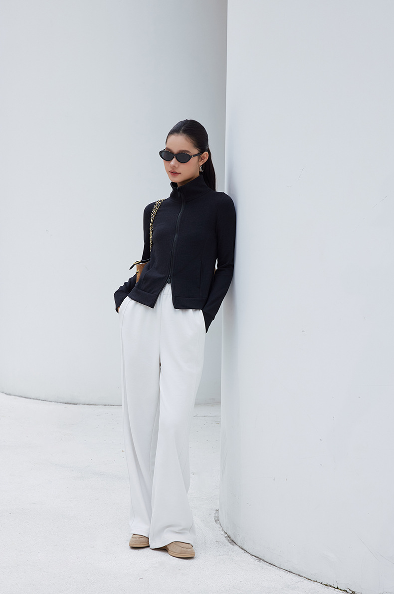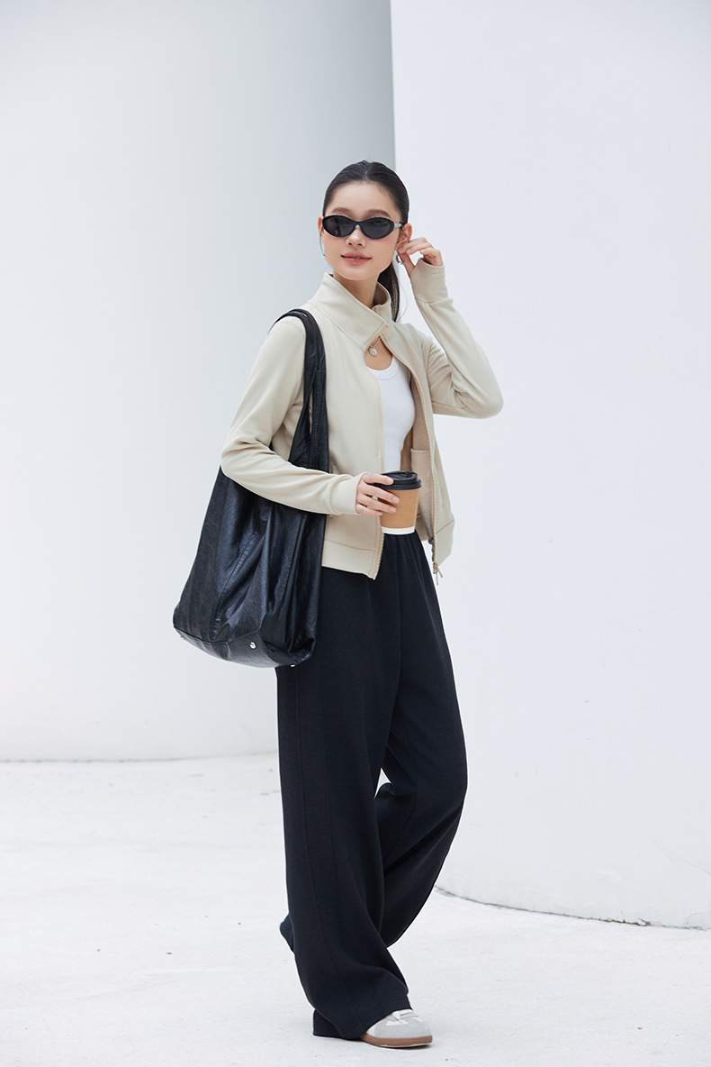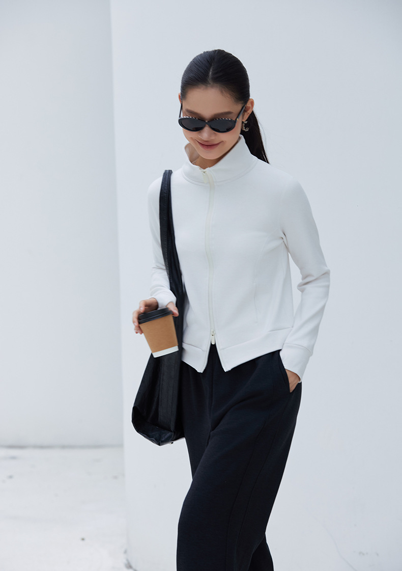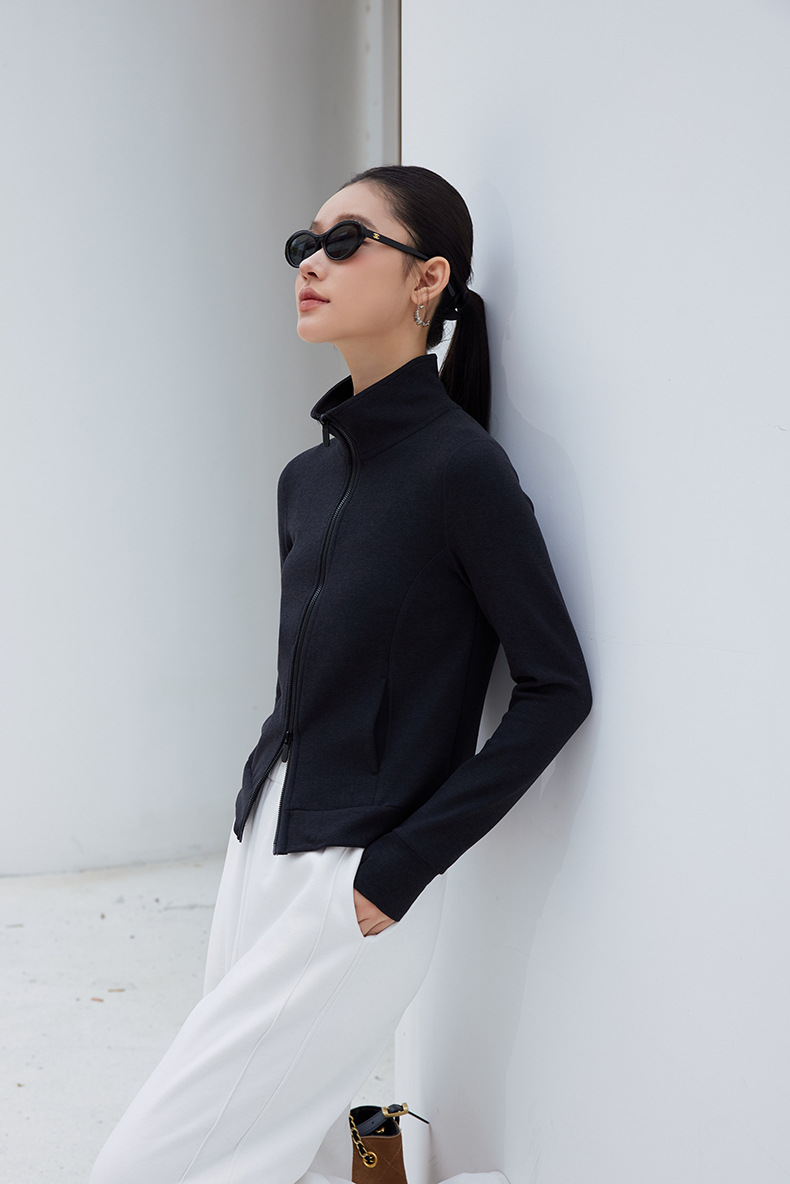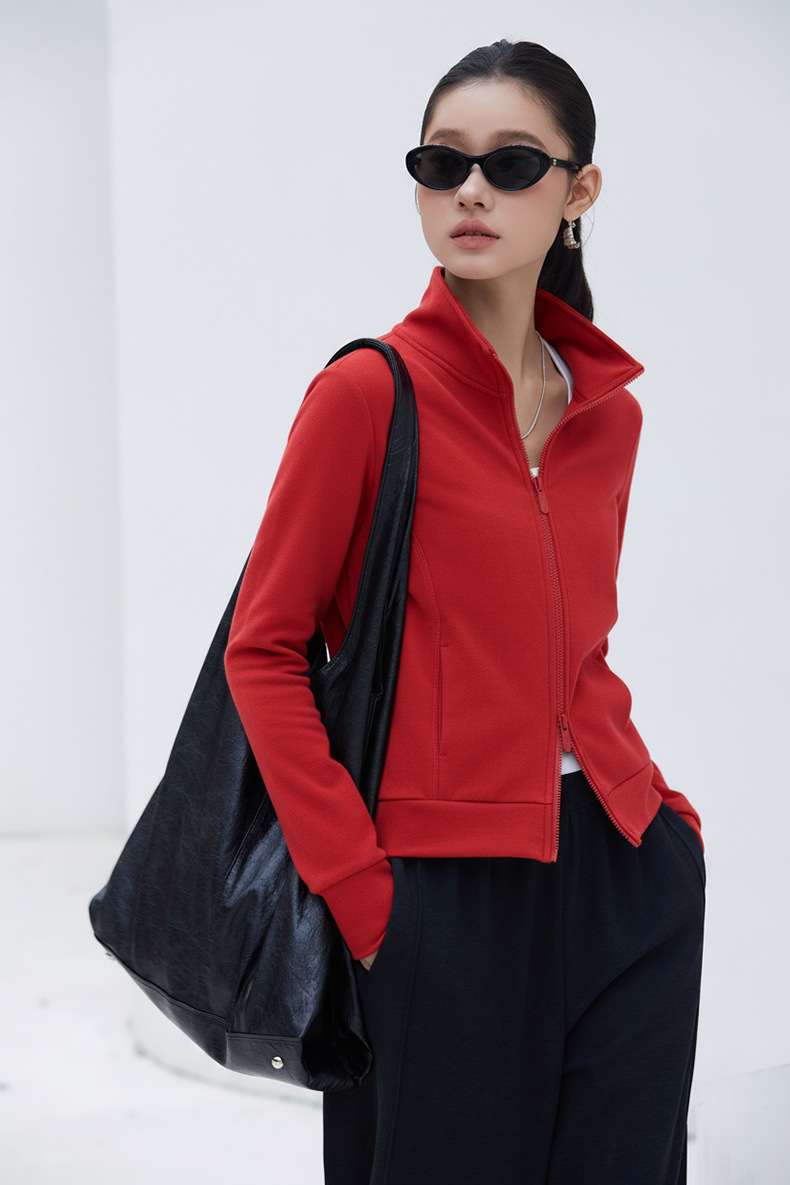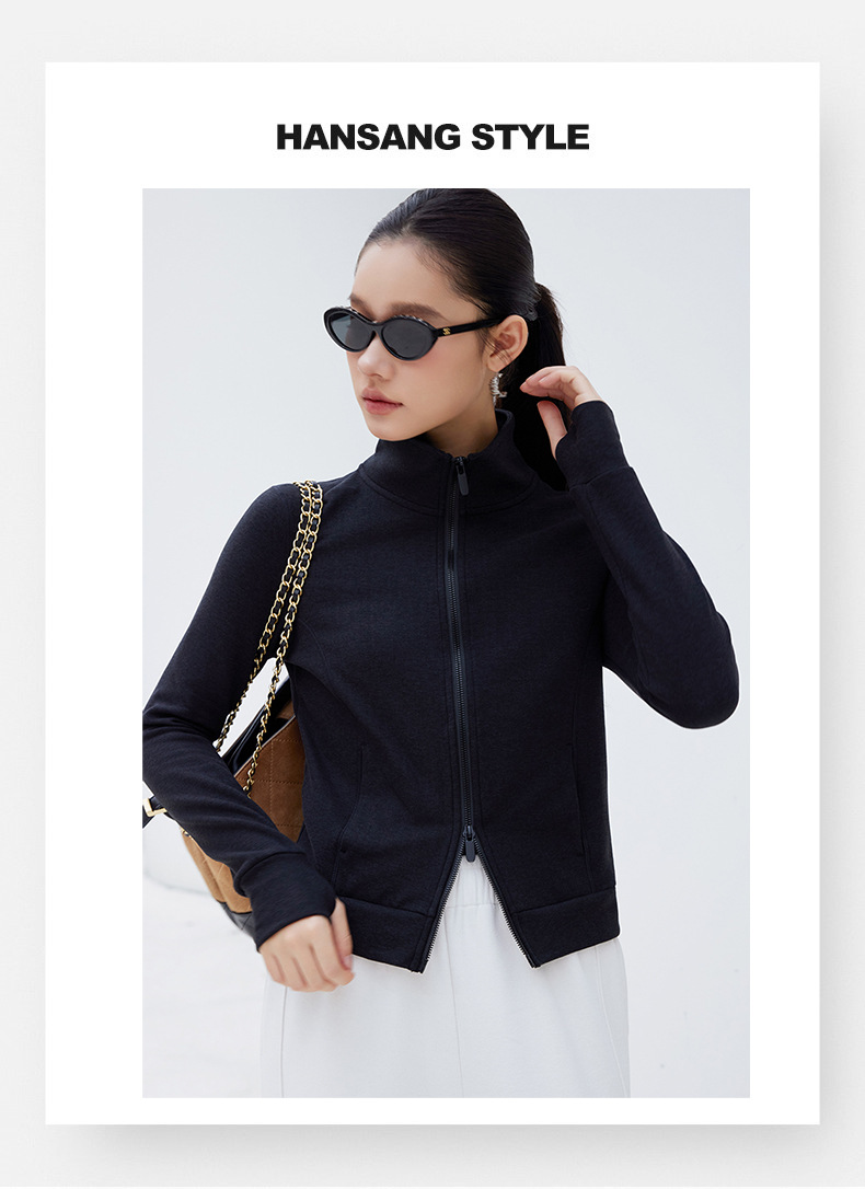 2025년 신상품 가벼운 따뜻한 벨벳 스탠드 칼라 슬림핏 더블 지퍼 레트로 스타일 여성용 스포츠 재킷