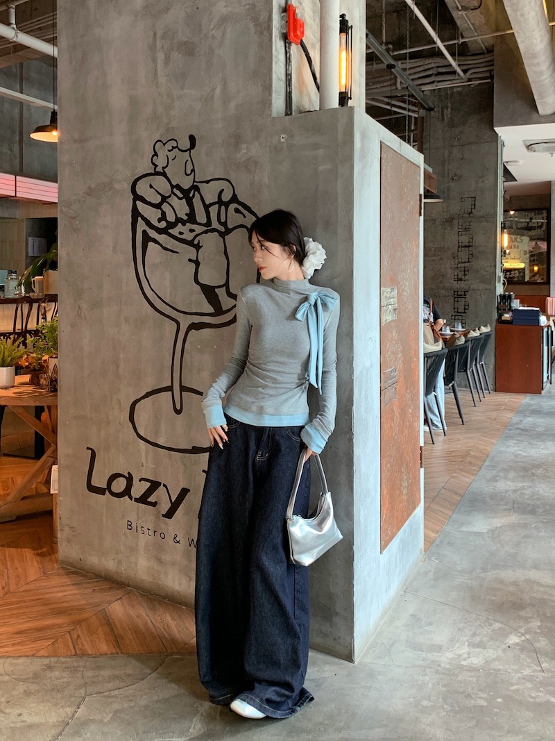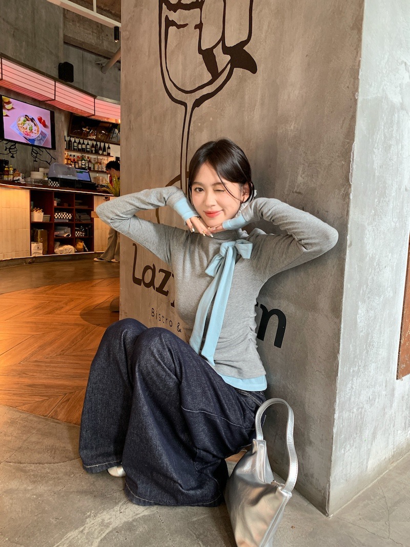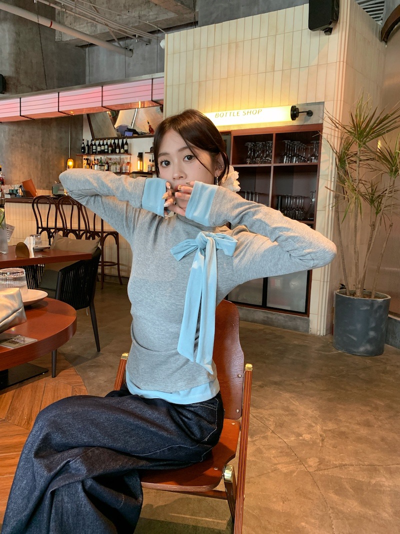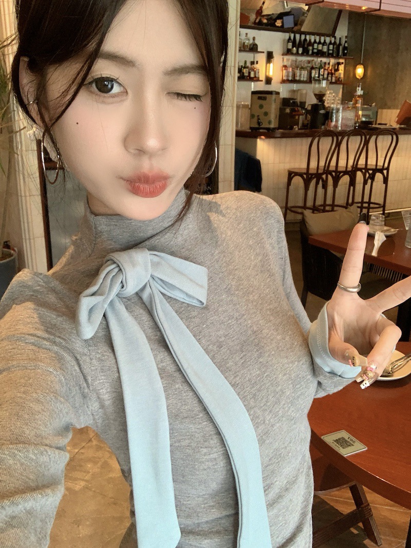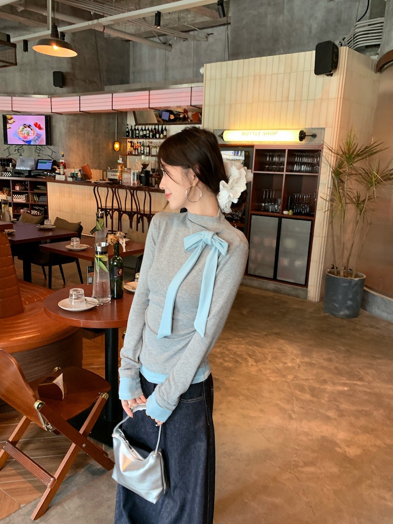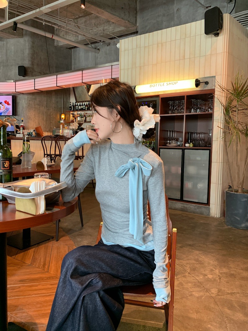 활 레이스 업 대비 긴팔 티셔츠 여성용 가을 슬림 핏 슬리밍 기본 레이어 셔츠 우아한 짧은 가짜 투피스 탑
