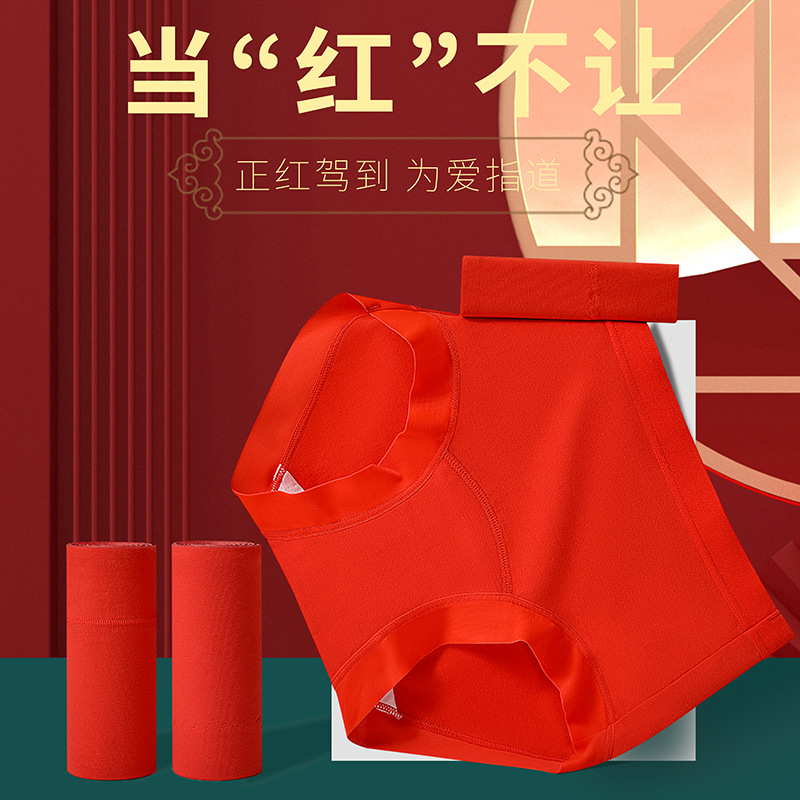 레이어드 빅 레드 여성용 코튼 속옷 올 라이프 웨딩 항균 코튼 트레이스 플러스 사이즈 높은 허리 브리프