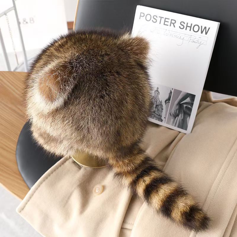 새로운 작은 너구리 모자 가을, 겨울 시뮬레이션 여우 모피 두껍고 따뜻하며 얼굴이 보이는 작은 부모-자식 스타일 레이펑 모자 플러시 모자