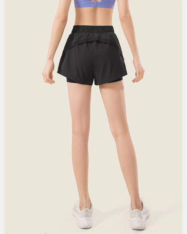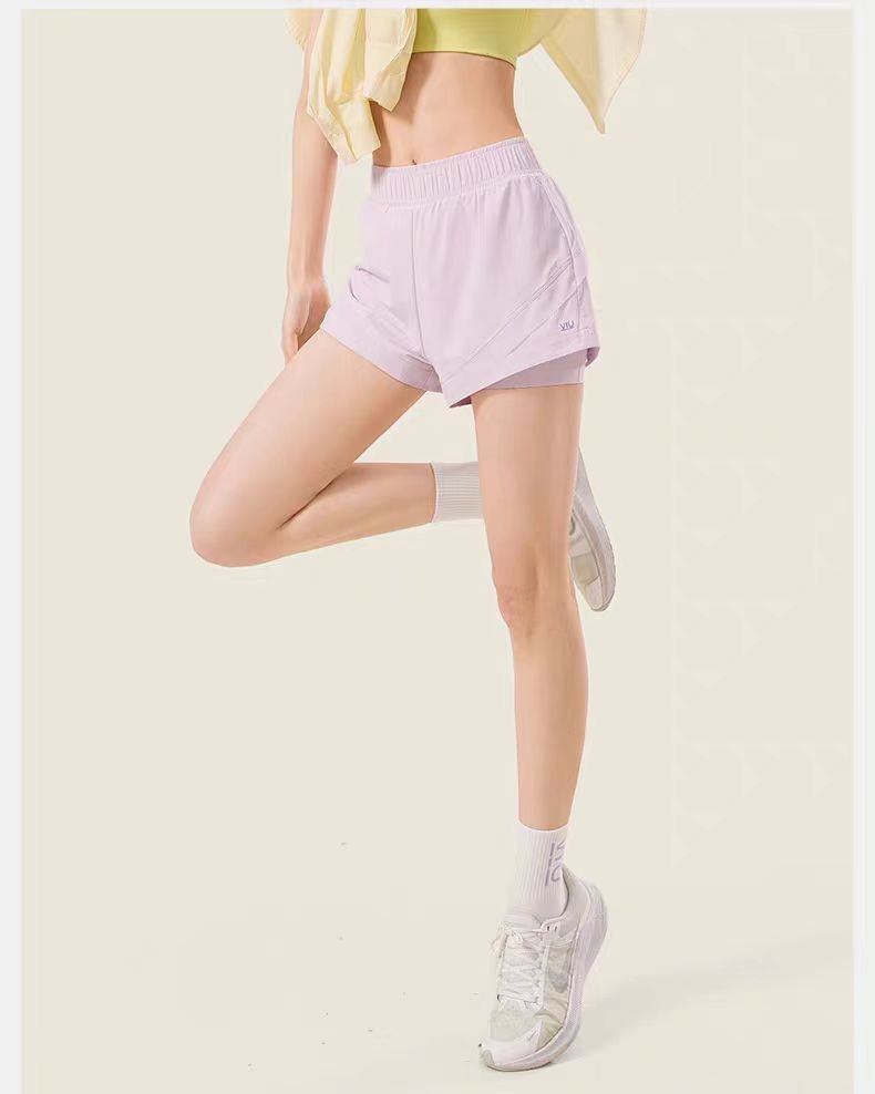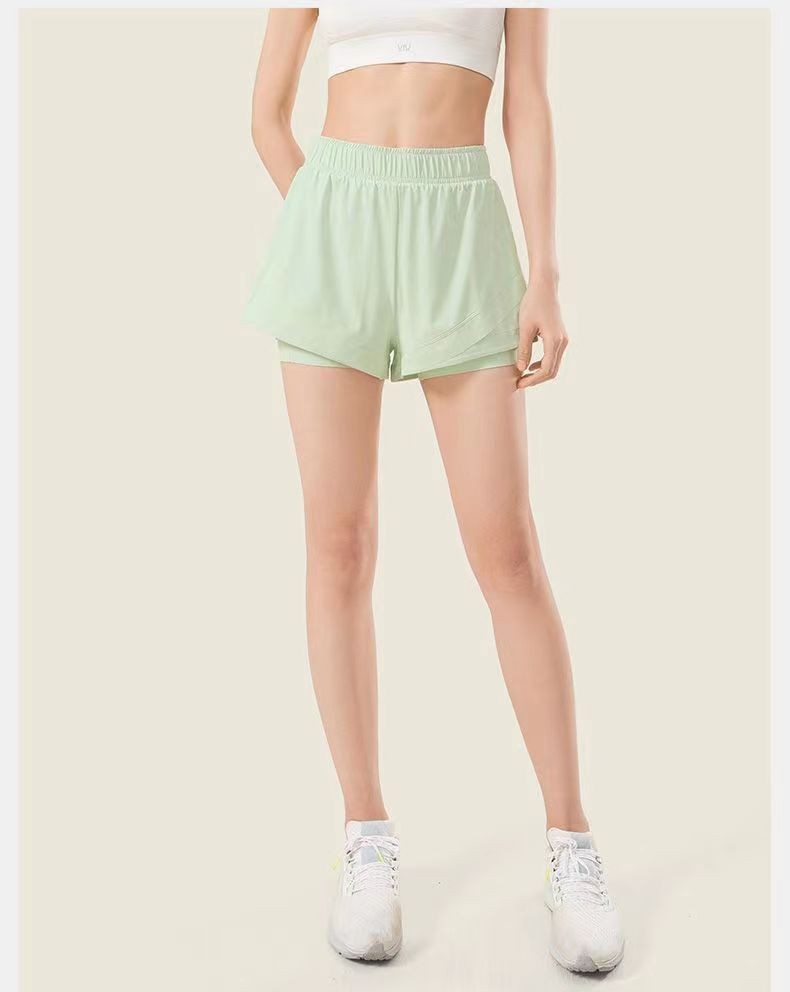 Lulu 반바지 속건성 노출 방지 하이 웨이스트 러닝 아우터 가짜 투피스 스포츠 반바지 여성용 요가 피트니스 반바지