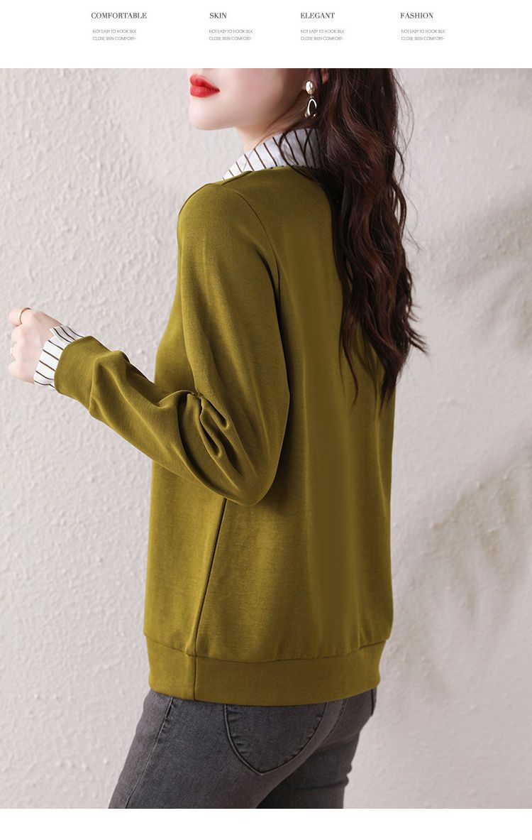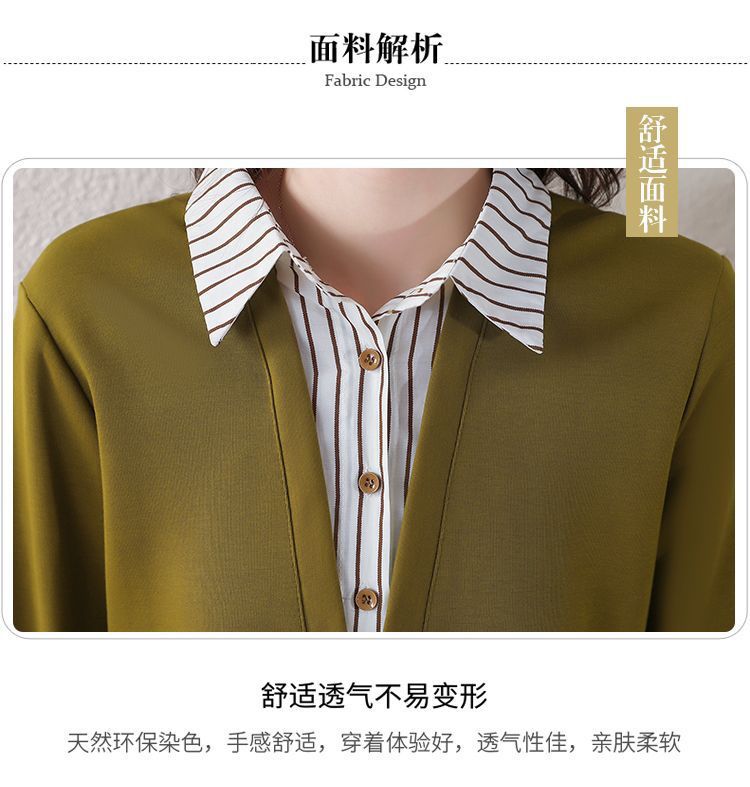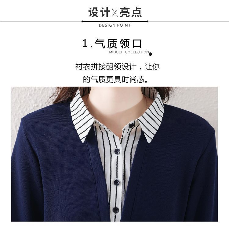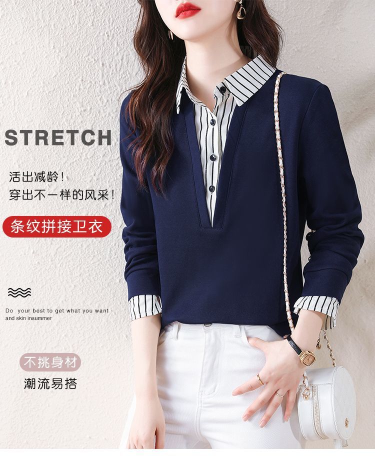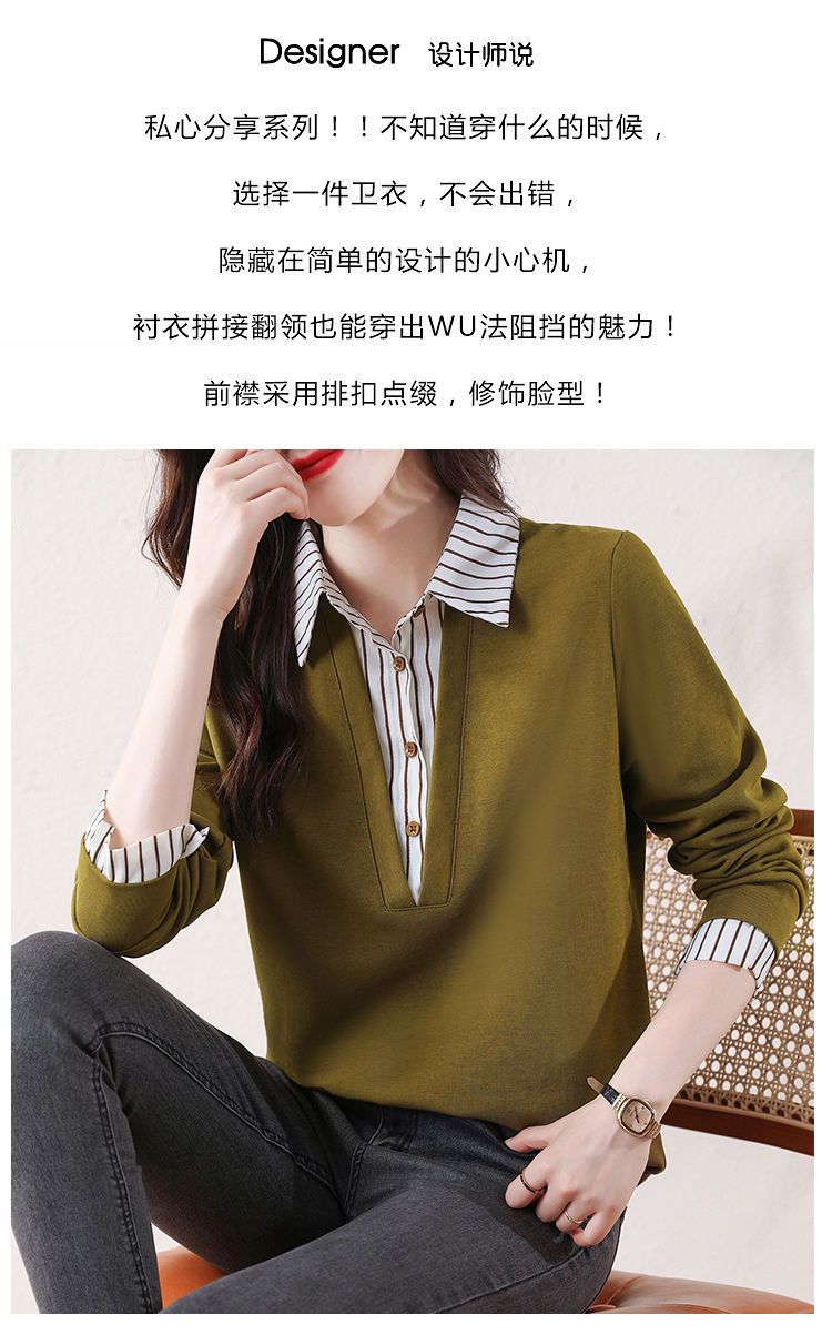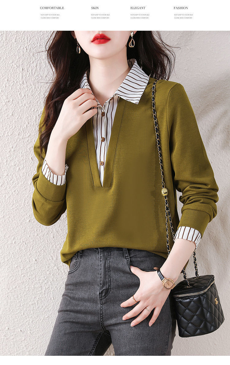 봄 일본과 한국의 새로운 긴팔 옷깃 가짜 투피스 여성용 최고 셔츠 캐주얼 슬리밍 플러스 사이즈 작은 셔츠