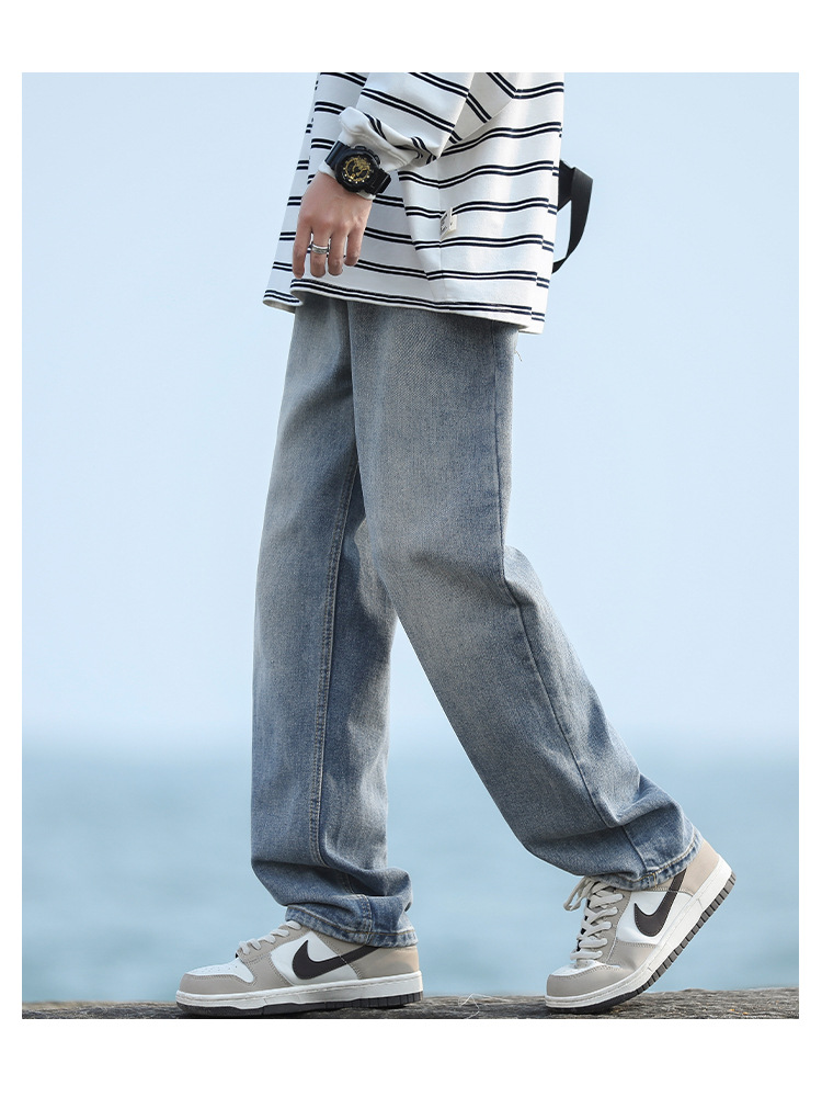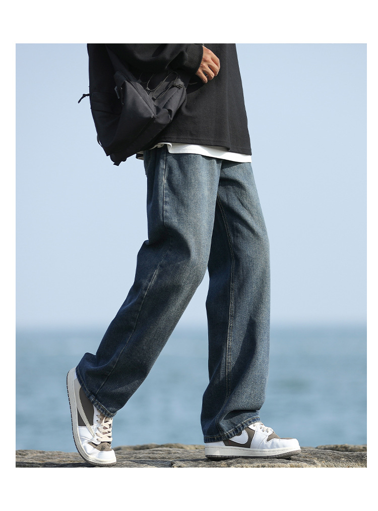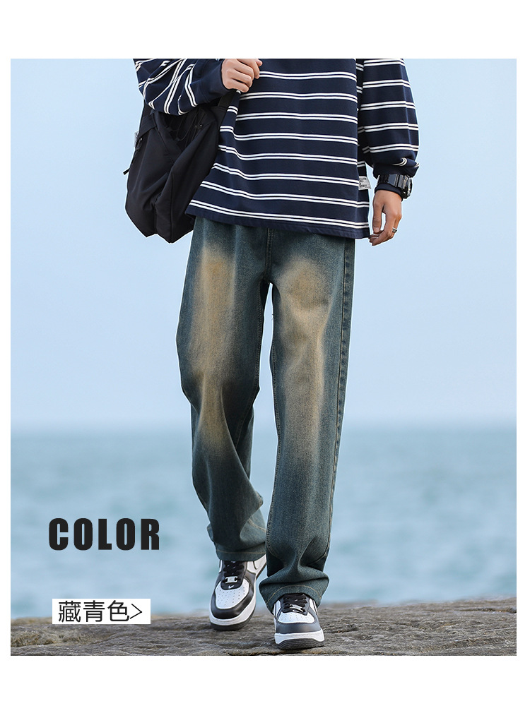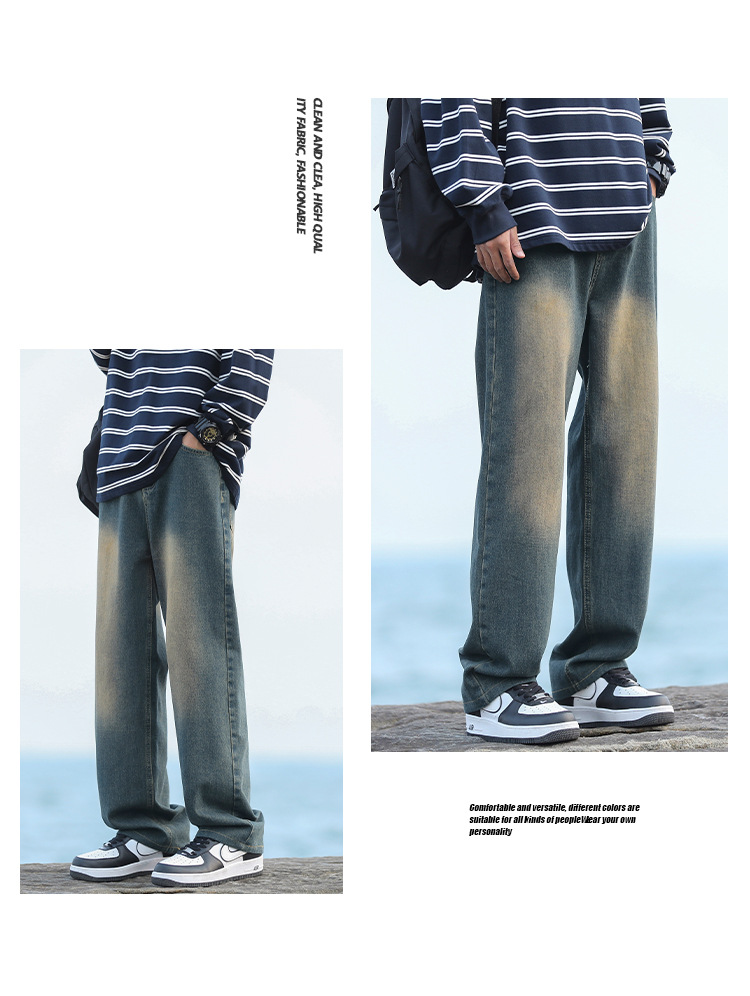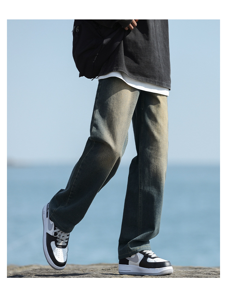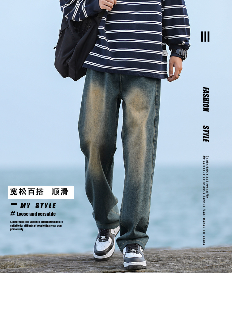 NASAOVER 남성용 청바지 가을 겨울 아메리칸 캐주얼 팬츠 봄 가을 레트로 트렌디 브랜드 긴바지 빈티지 워싱